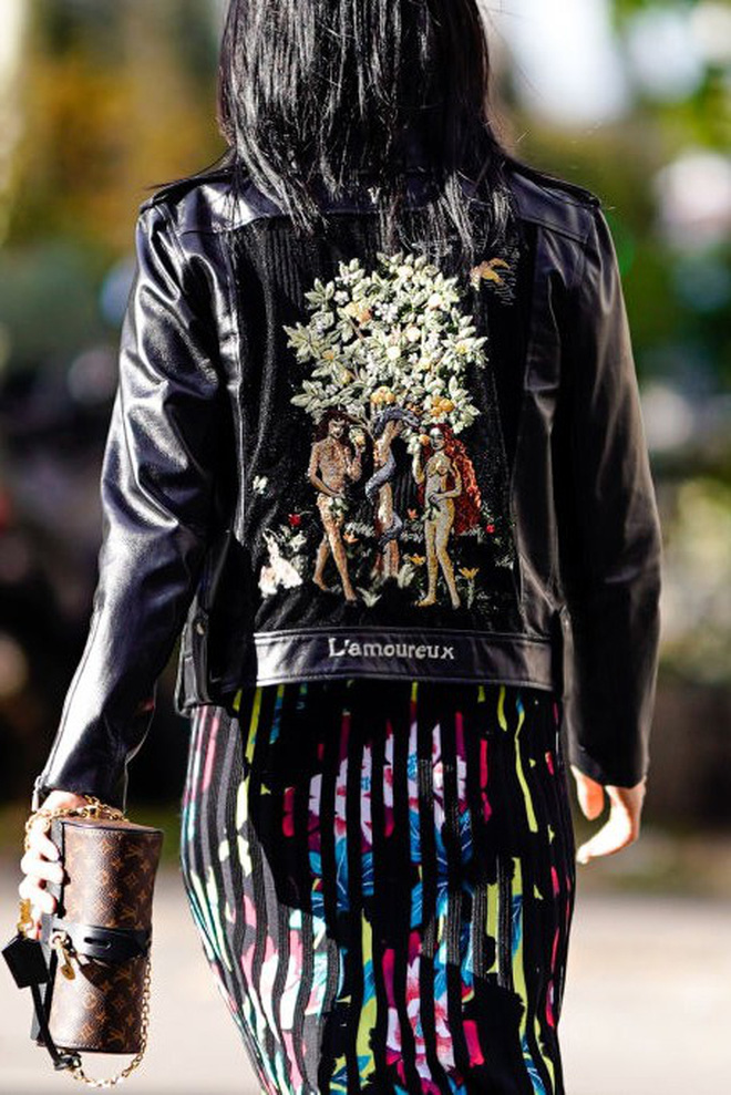 Lần khác, outfit allblack gồm biker jacket Saint Laurent và chân váy tua rua của cô nàng cũng được cánh săn ảnh tại tuần lễ thời trang chú ý đến.
