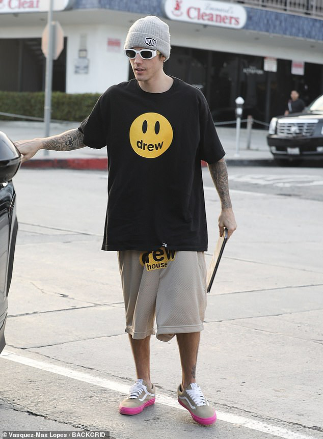 Justin Bieber nổi bật trên phố với trang phục thương hiệu Drew của mình trước thềm đám cưới