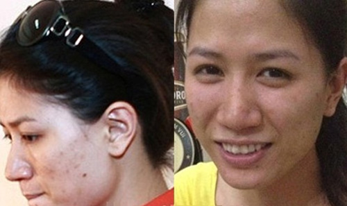 Gương mặt đầy mụn, thâm của người mẫu Trang Trần.