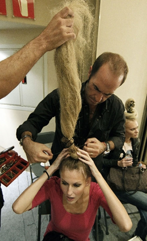 Bên cạnh “nỗi đau” mà người mẫu phải chịu đựng từ giày cao gót thì việc làm tóc cũng là nỗi khiếp sợ với người mẫu. Trong phòng trang điểm họ phải tuân thủ tuyệt đối ý kiến cũng như công việc của các nhà tạo mốt, thợ làm tóc. Việc thường xuyên phải tiếp xúc với hóa mỹ phẩm, máy ép, uốn, gel, gôm… cùng với những lực tác động mạnh mẽ, mái tóc của các người đẹp bị tổn thương rất nghiêm trọng.