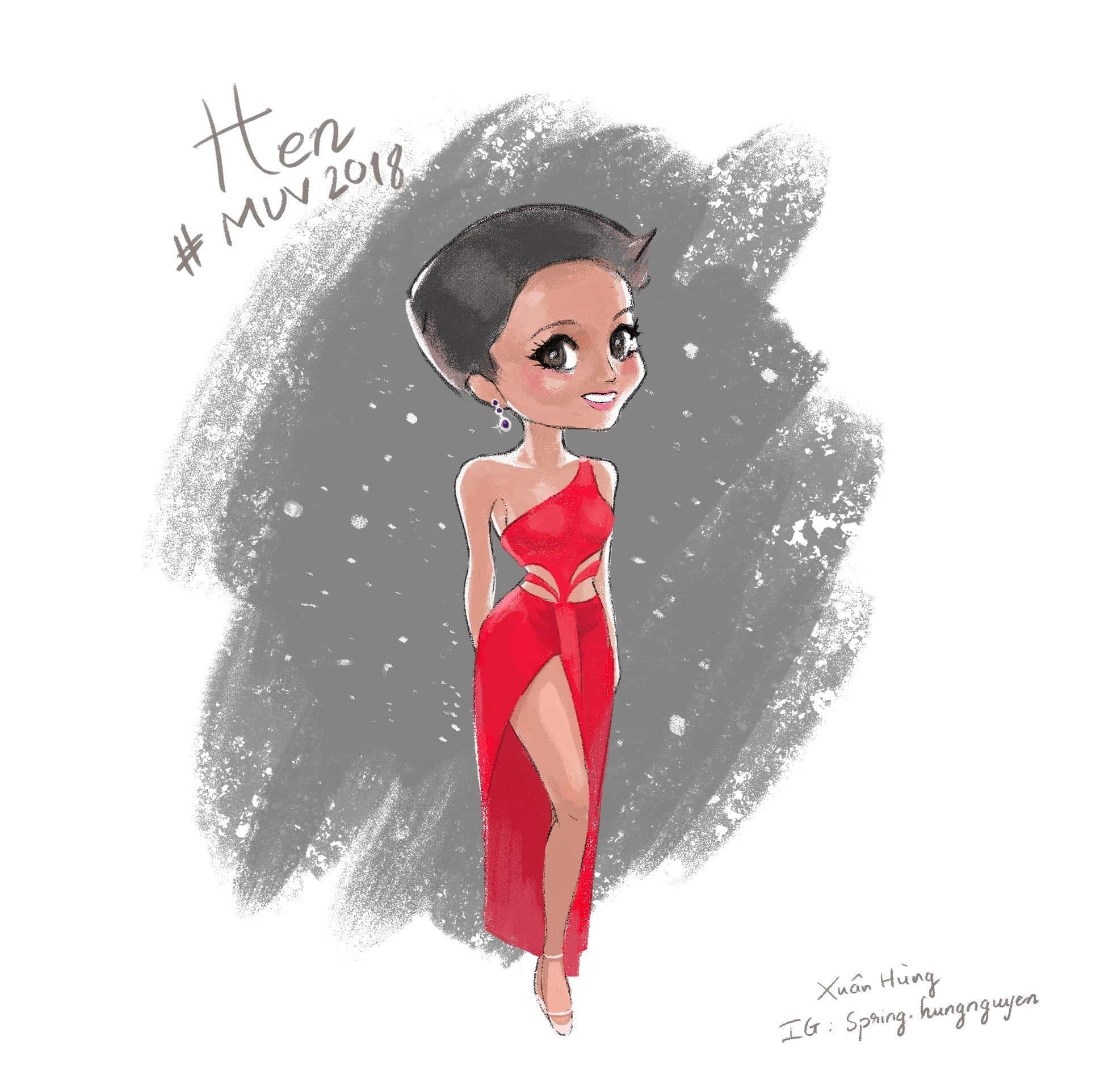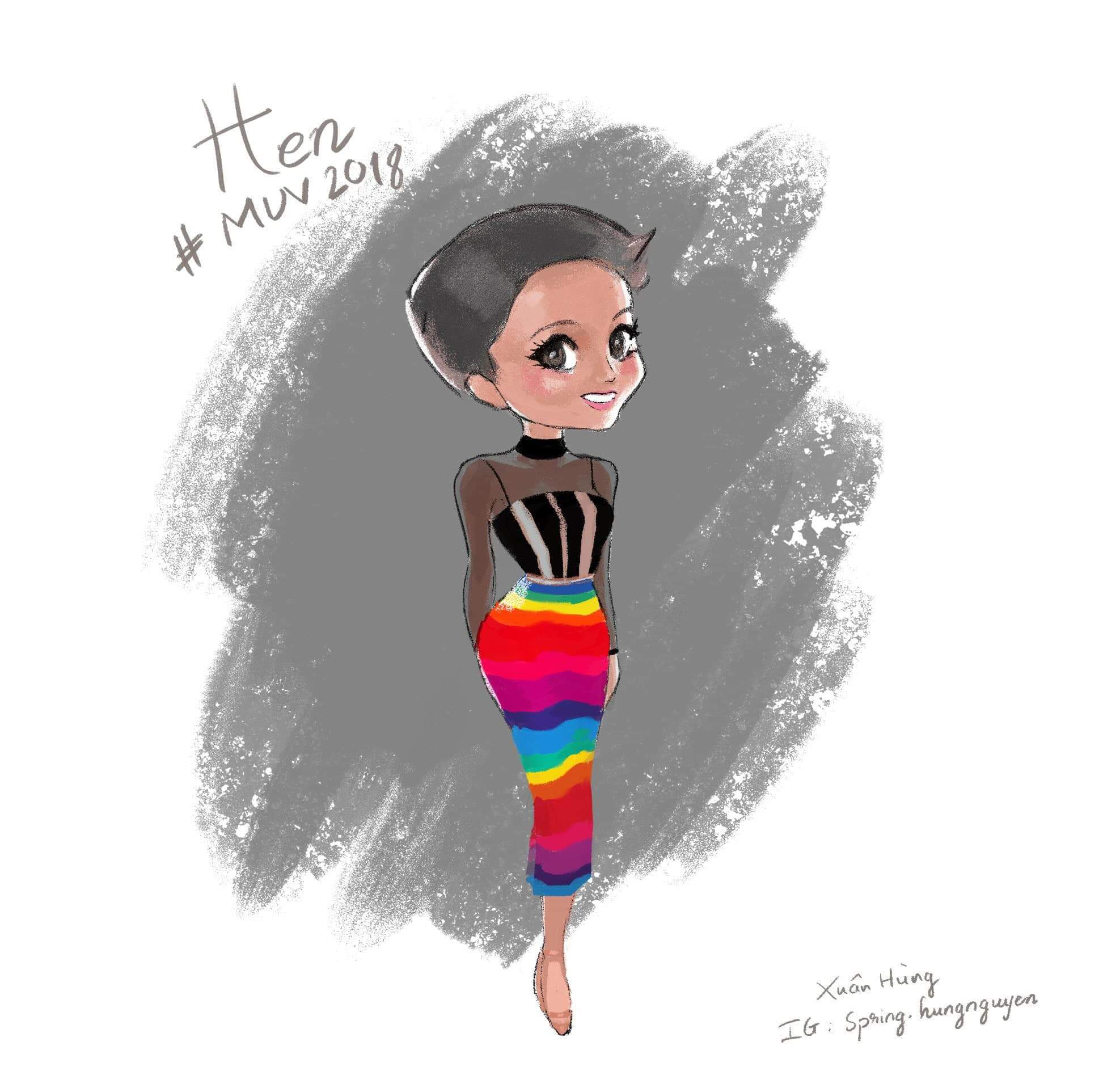 Được biết, đây là tác phẩm của một bạn fan tên Xuân Hùng. Dưới nét vẽ của Hùng, H'Hen Niê hiện lên thật sinh động, đáng yêu.