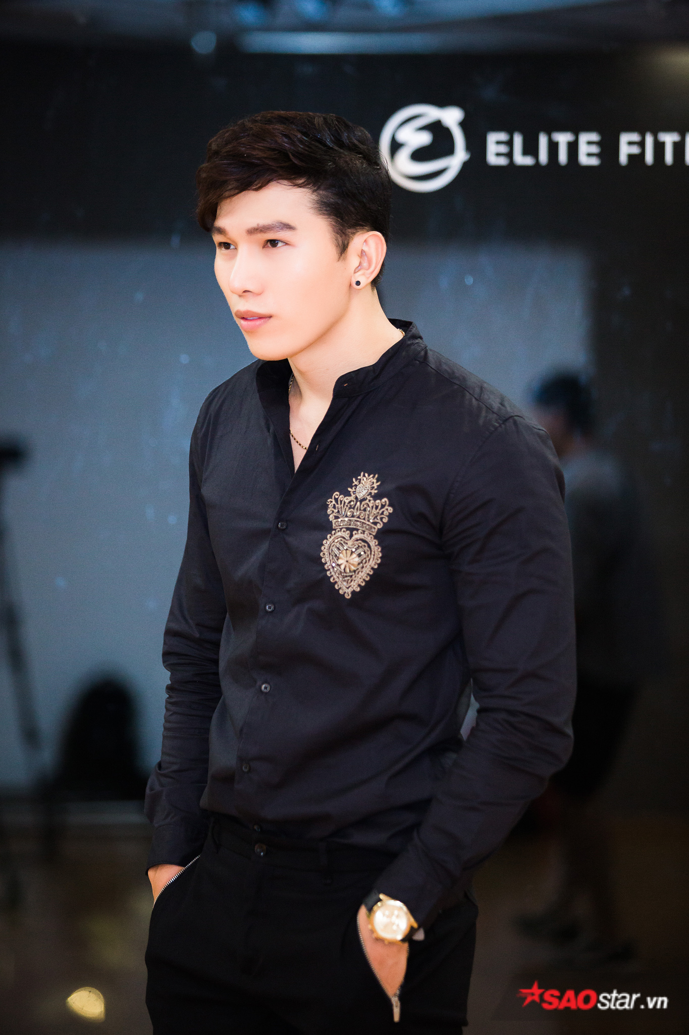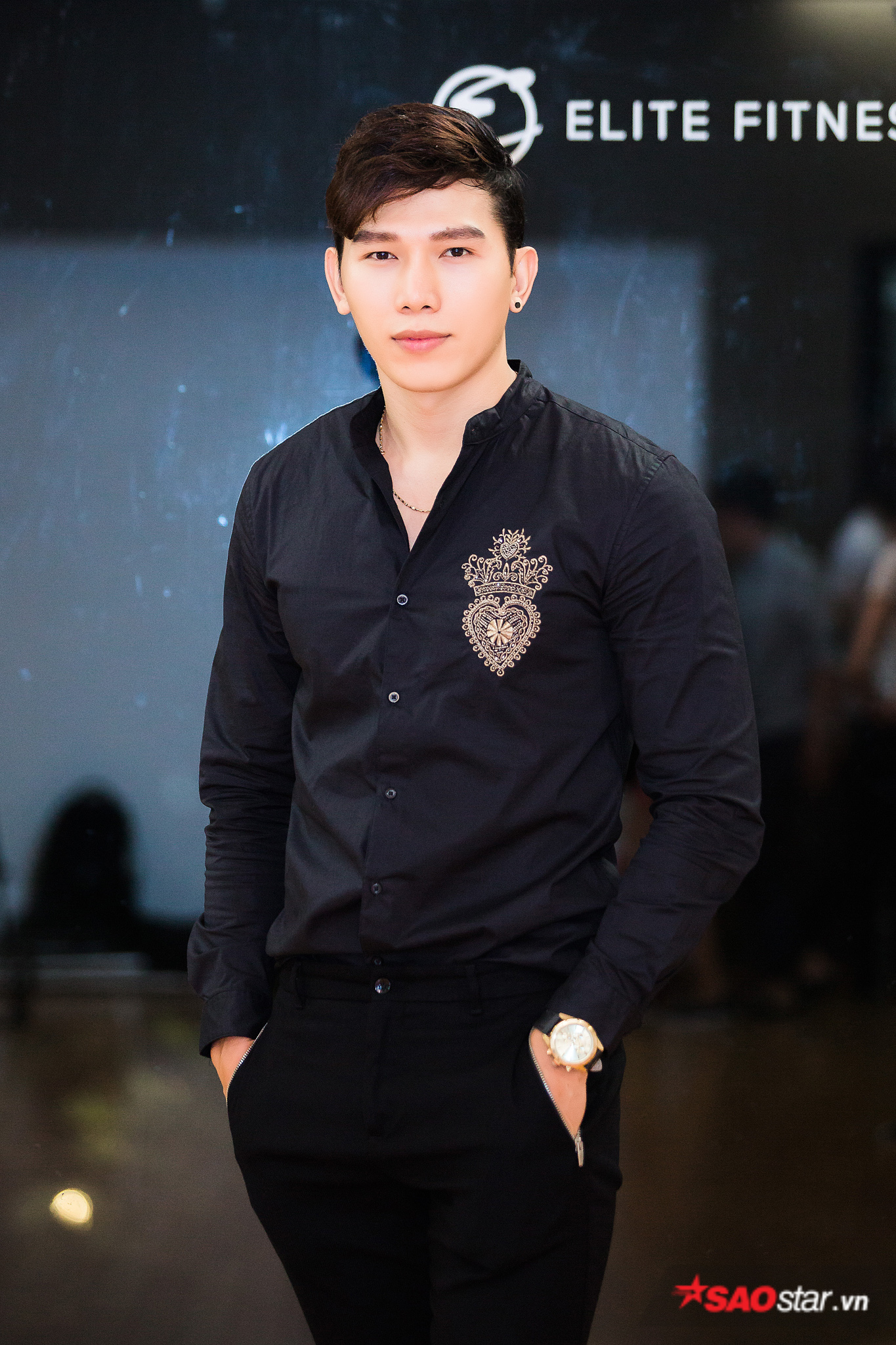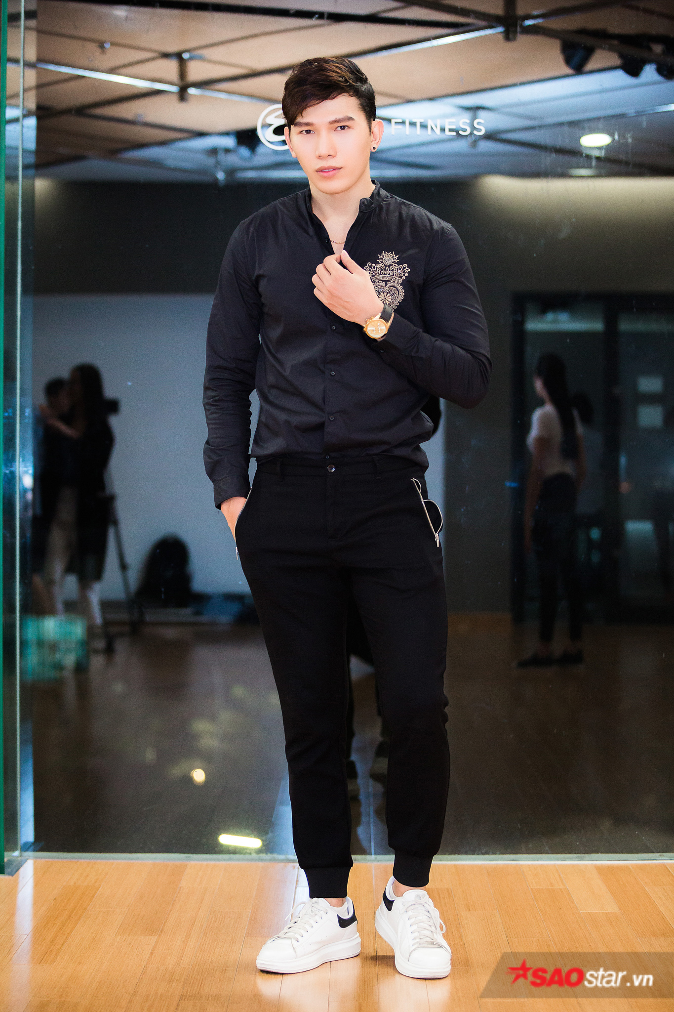 Xuất hiện tại buổi huấn luyện đầu tiên của cuộc thi Siêu mẫu Việt Nam ngày 16/5, Ngọc Tình vô cùng điển trai trong cả cây đen ấn tượng.