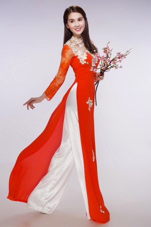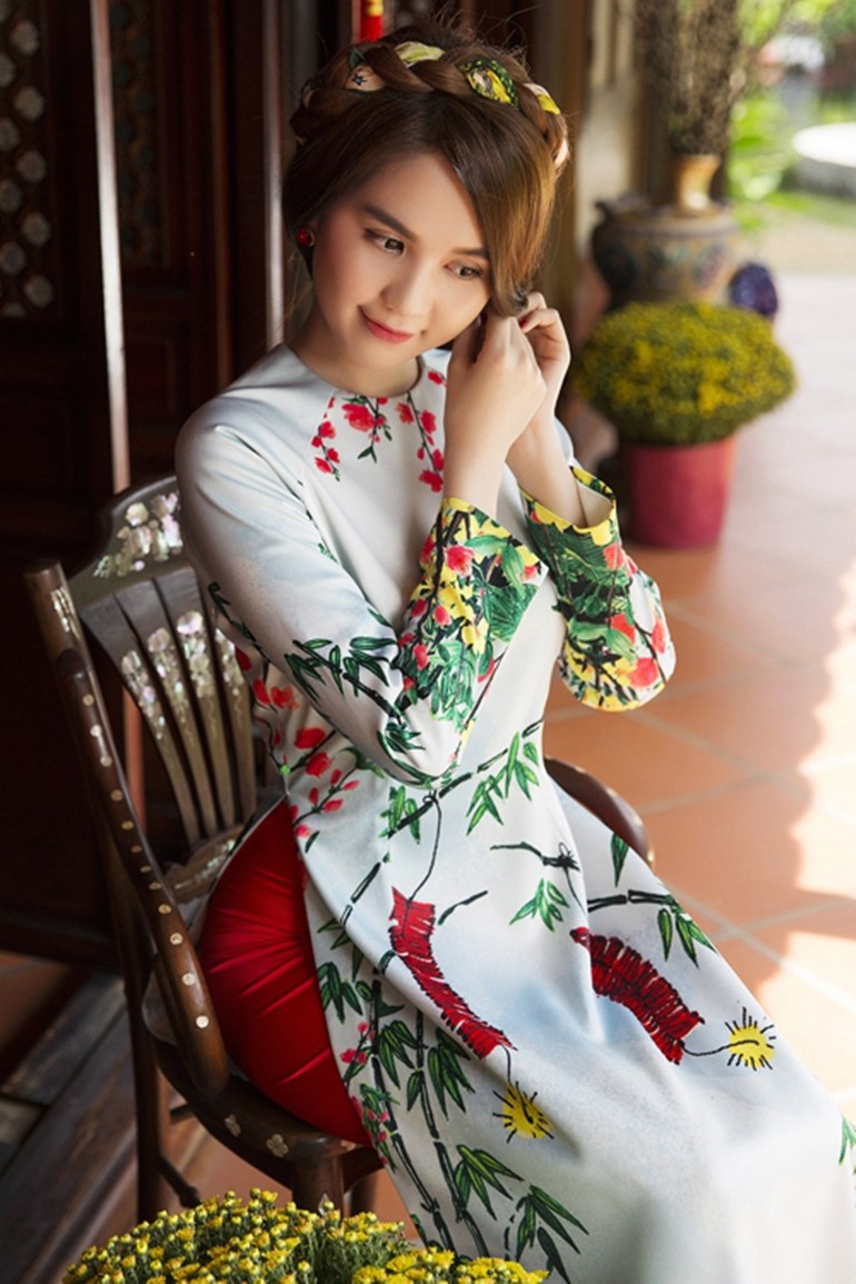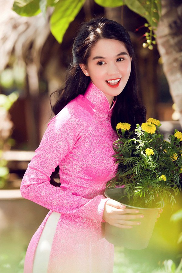Chuộng sexy hở bạo là thế nhưng trong những lần mặc áo dài Ngọc Trinh luôn chọn cho mình dáng áo dài truyền thống nhất.