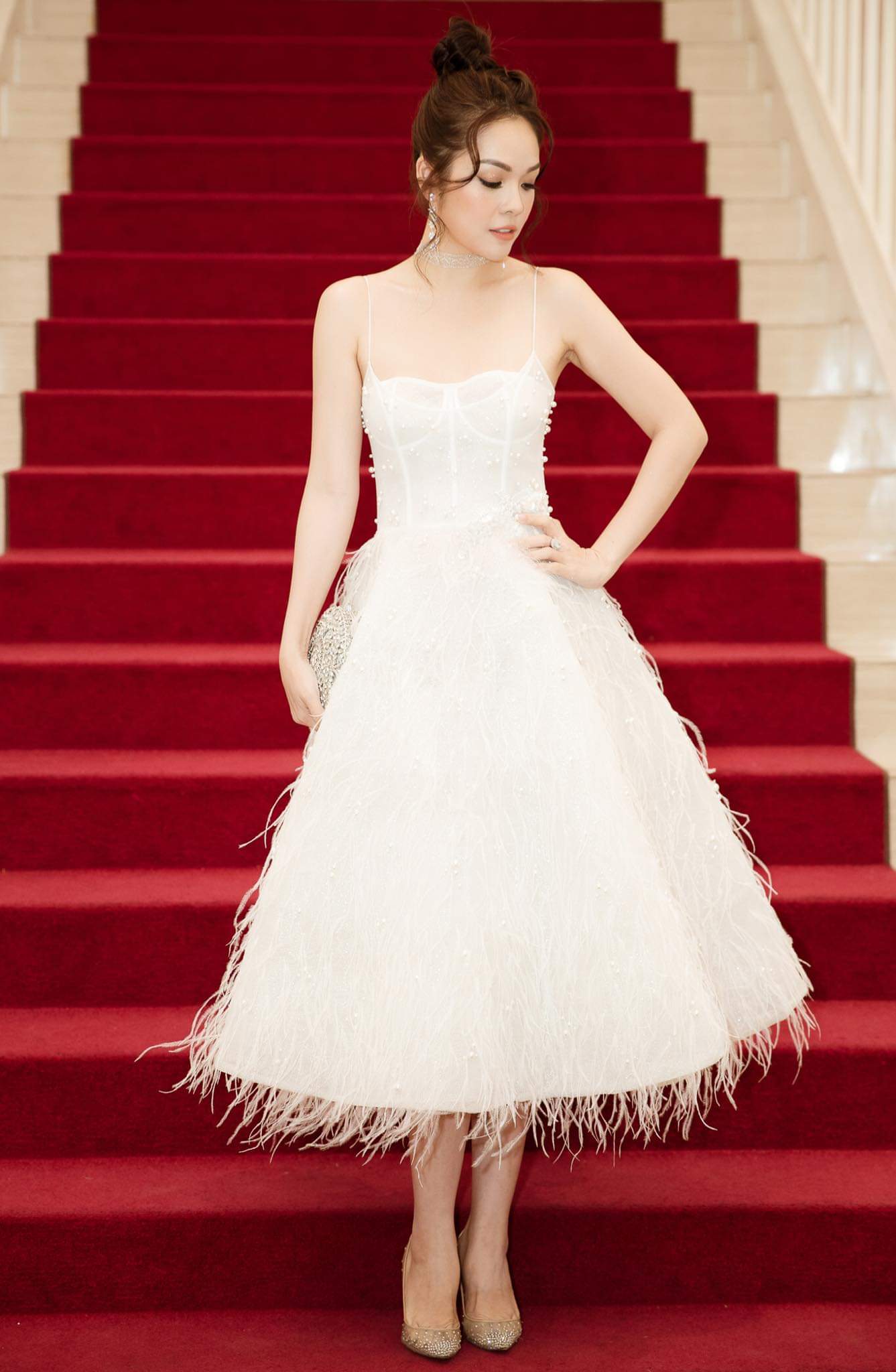 Dương Cẩm Lynh chắc hẳn đang liên tưởng đến hình tượng “thiên nga trắng” khi lựa chọn chiếc váy này tham dự sự kiện thời trang.