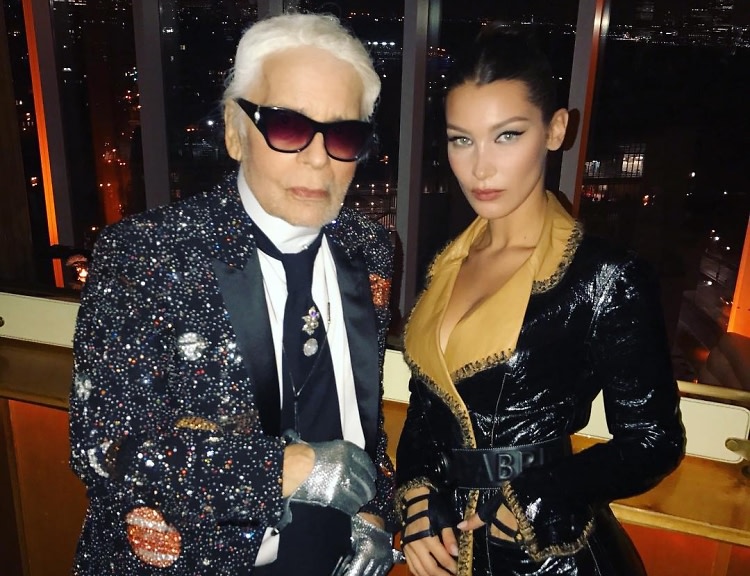 10. NTK Karl Lagerfeld và chân dài Bella Hadid trong một buổi tiệc của Chanel,ông luôn bên cạnh nàng mẫu trong các shoot chụp hình cho thương hiệu.