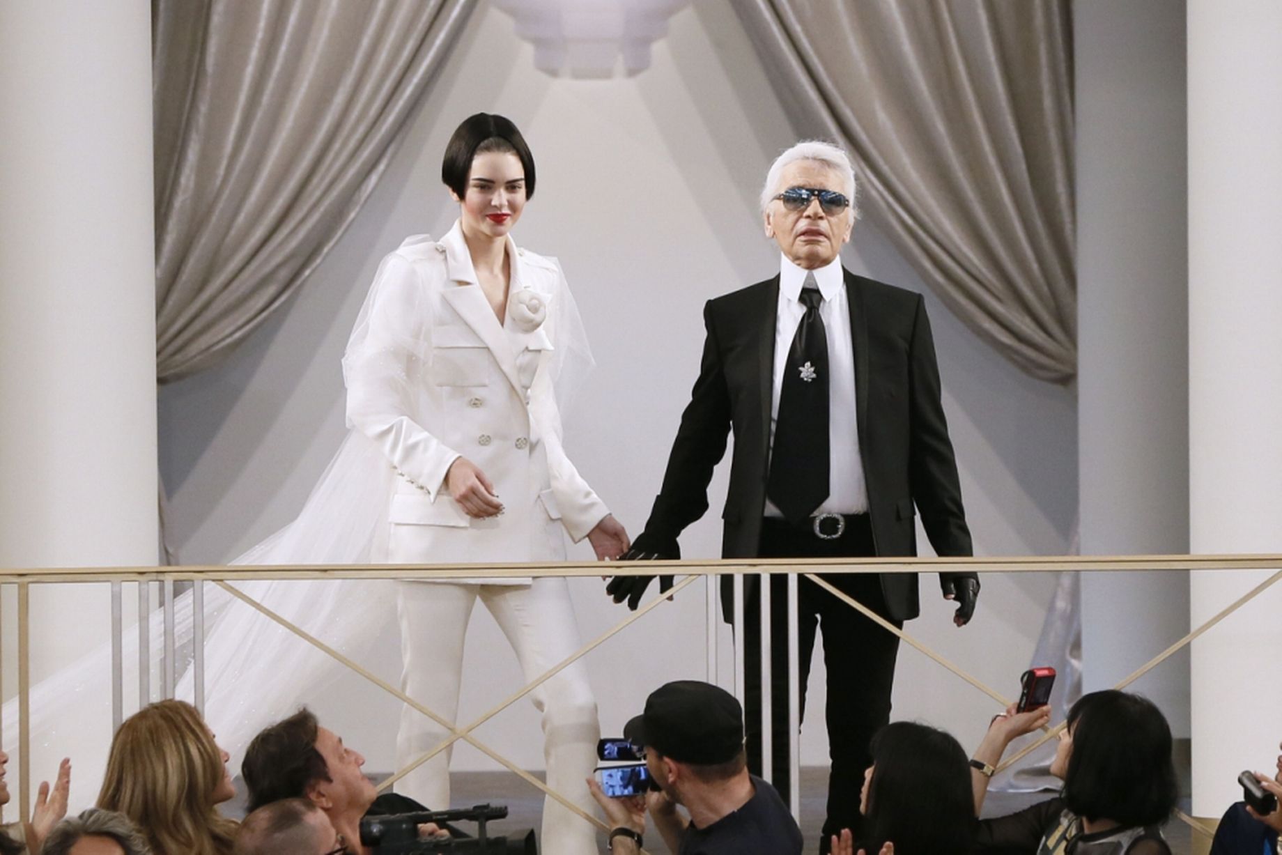 7. Chân dài 9x Kendall Jenner xuất hiện cuối show Haute Couture Thu Đông 2015 của Chanel.