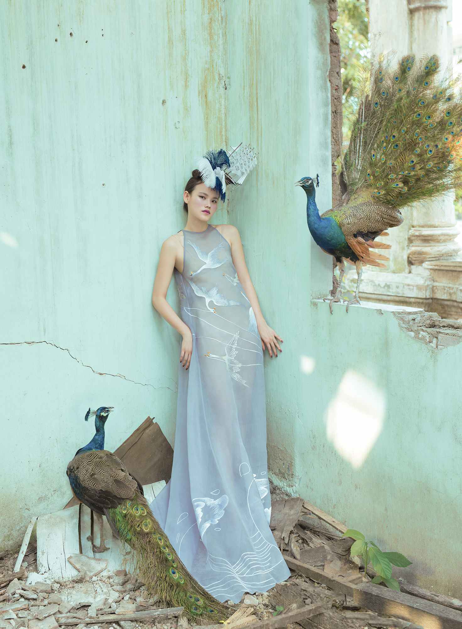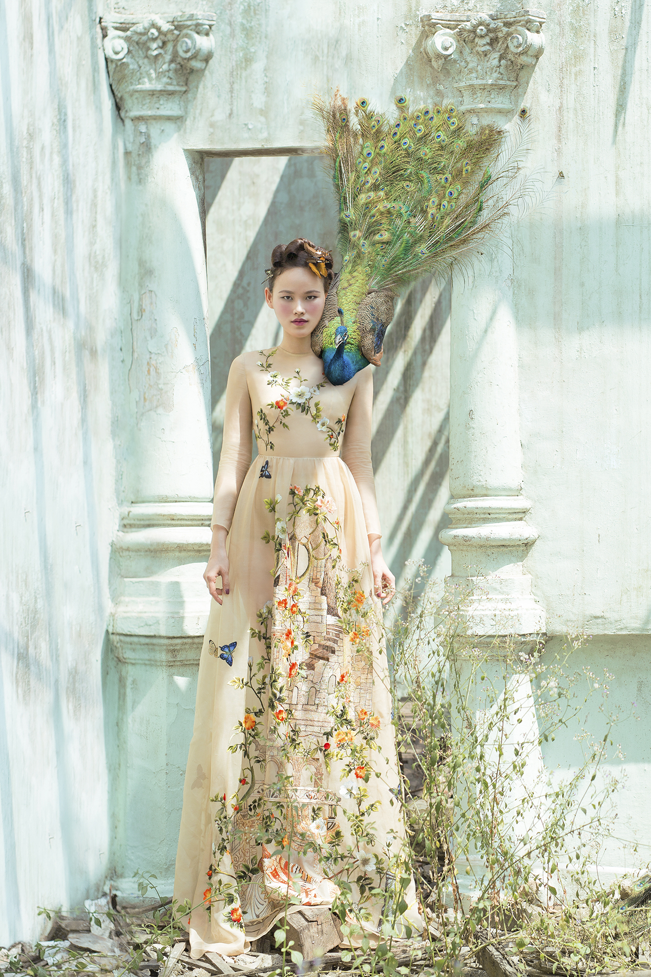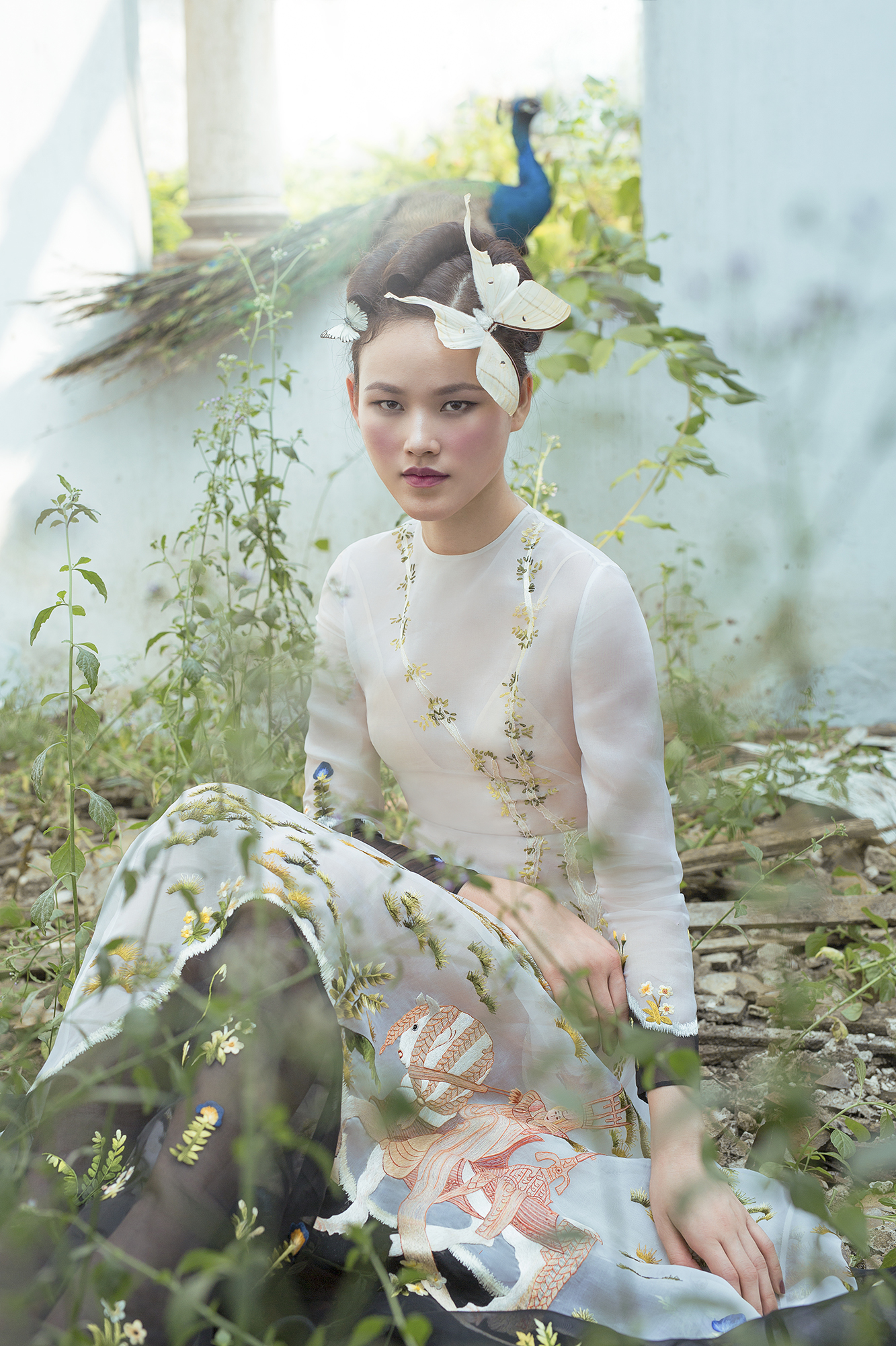 Toàn bộ thiết kế lấy ý tưởng từ thiên nhiên với họa tiết hoa lá, chim muông. Bộ sưu tập được thực hiện thủ công bằng tay 100% từ các nghệ nhân ở các làng nghề cổ truyền Việt Nam.