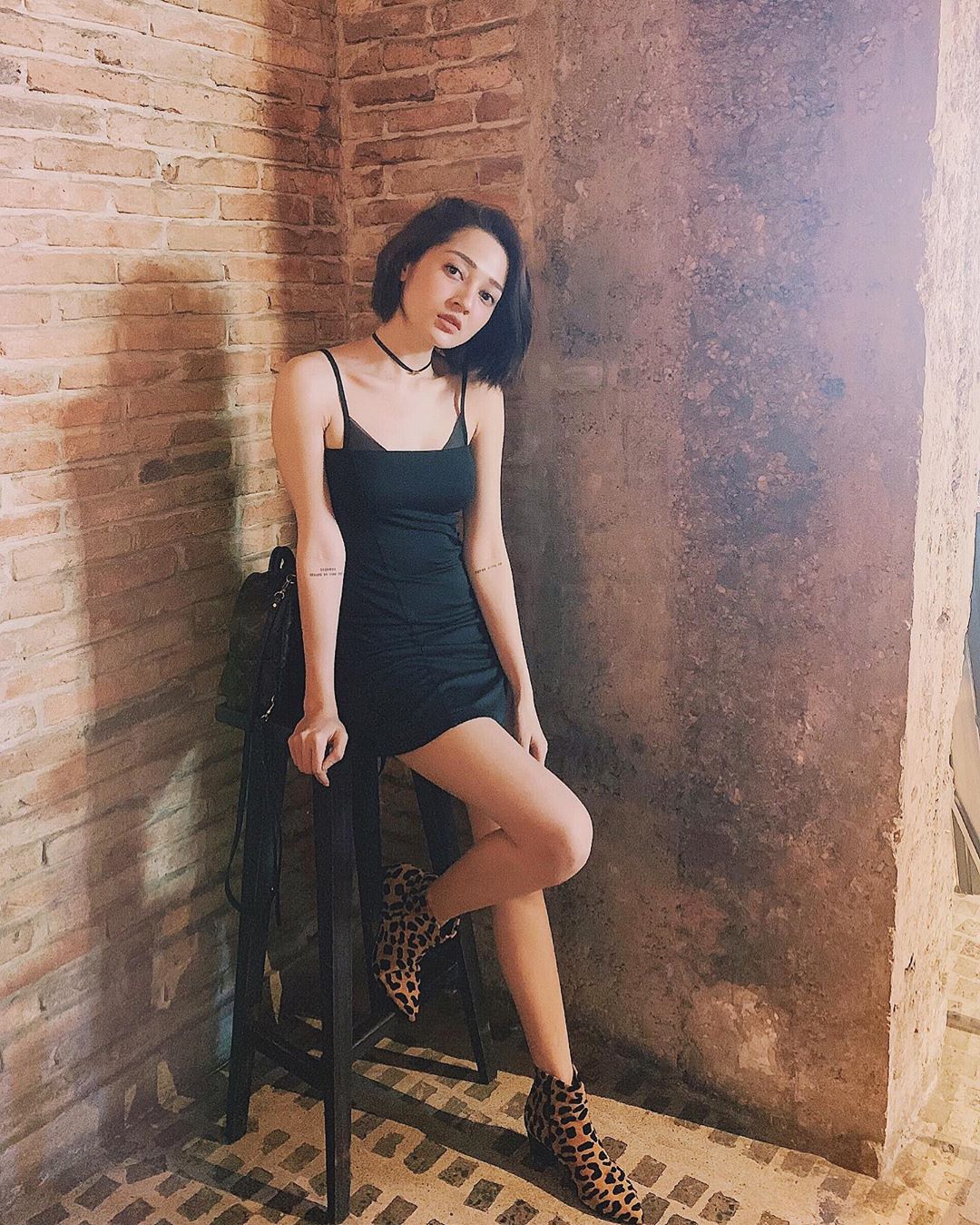 Váy ngắn hai dây lả lơi cùng boots, Bảo Anh thật sự biết cách khoe tỷ lệ hình thể của mình.