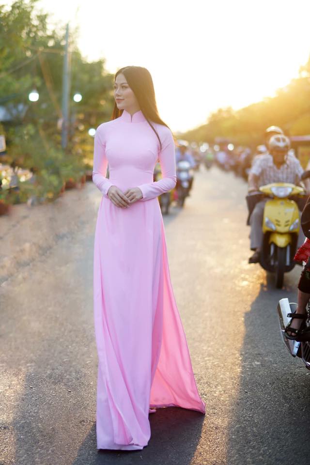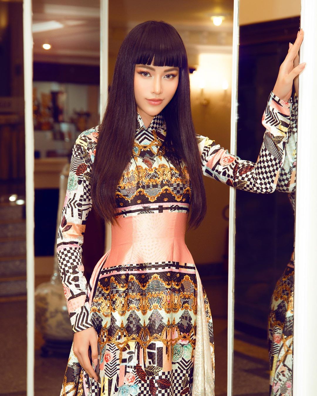 Phương Khánh diện áo dài hết sức sắc sảo.
