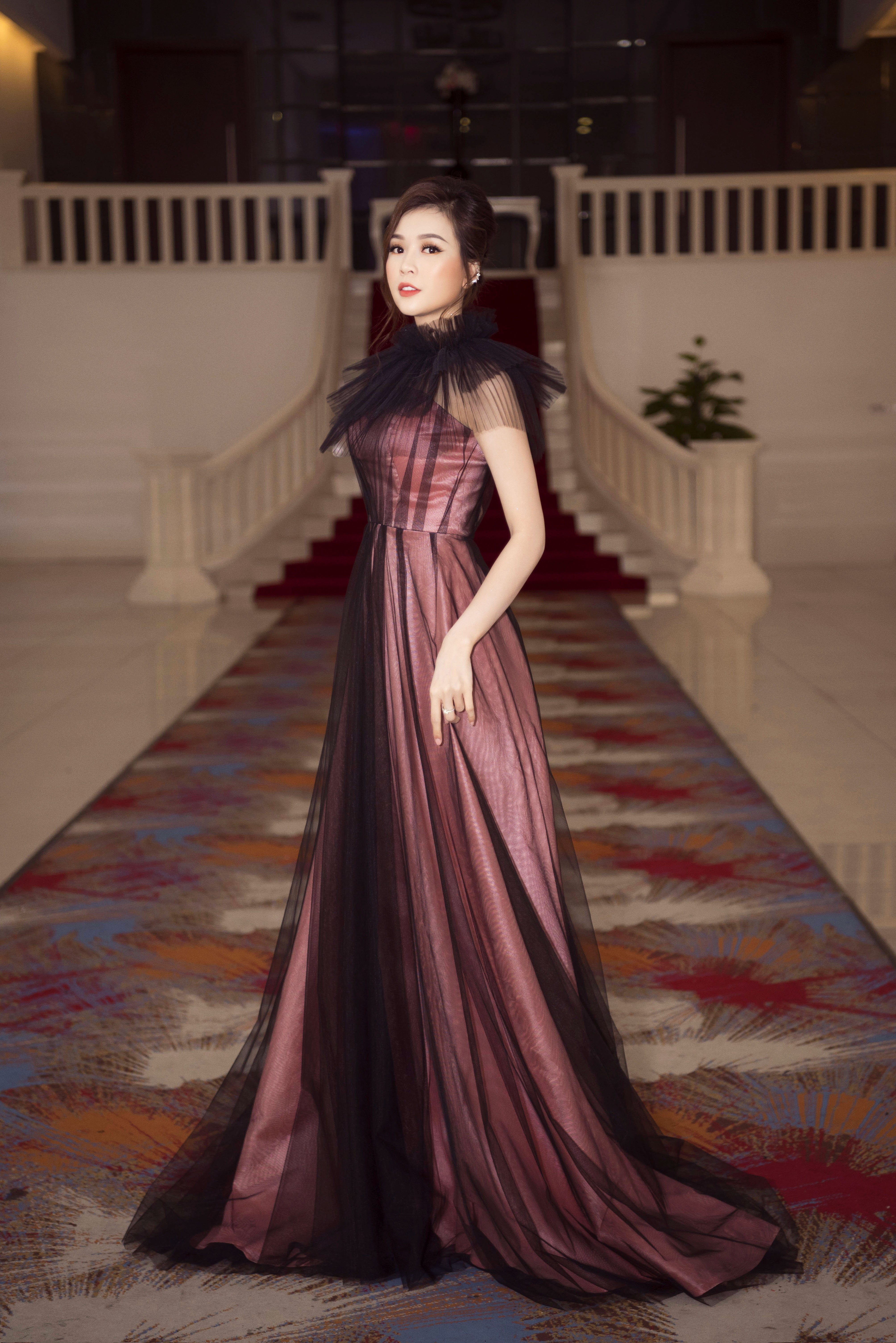 Phần tà váy được xử lí khéo léo chồng lớp tạo hiệu ứng chuyển màu cực kỳ thú vị.