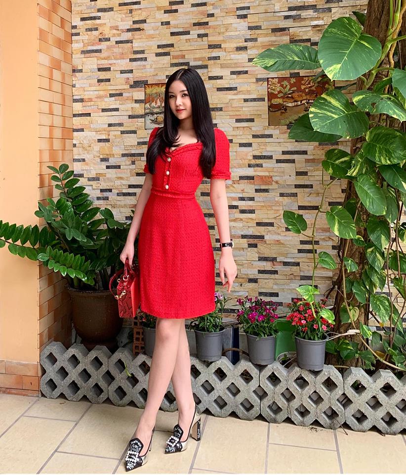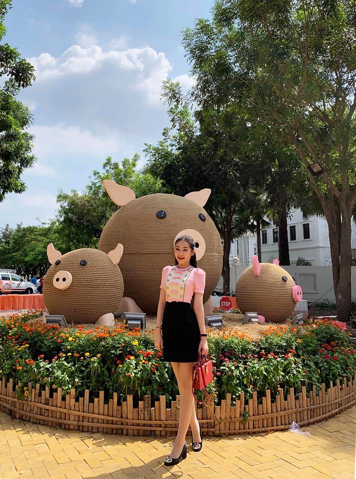 Trong dịp Tết vừa qua, cô nàng cũng chọn cho mình các kiểu váy ngắn, màu sắc rực rỡ, pha phối vừa phải để du xuân.