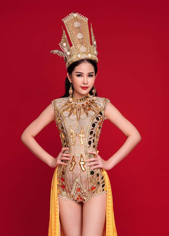 Tuy nhiên, để thể hiện rõ những đôi cánh hạc, người đẹp đã quyết định tháo bỏ phần tà dài. Điều này khiến đại diện Việt rơi vào tình thể để lộ cả vòng 3 khi trình diễn trên sân khấu.