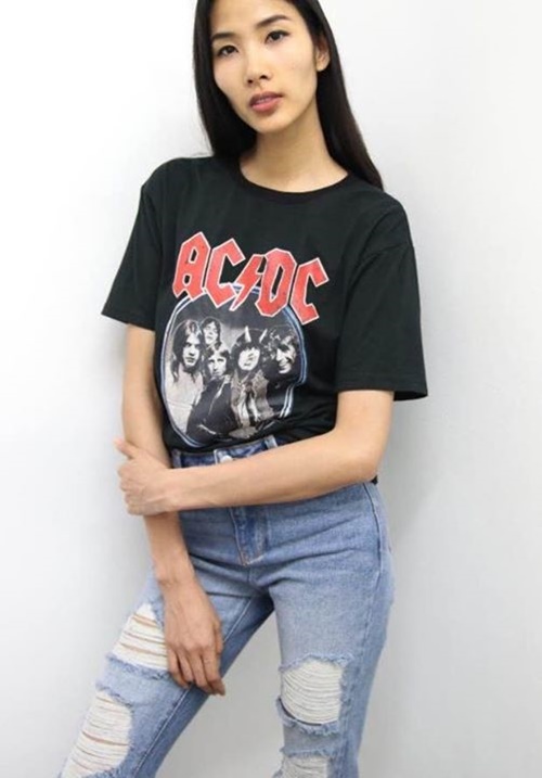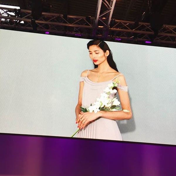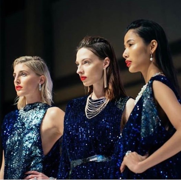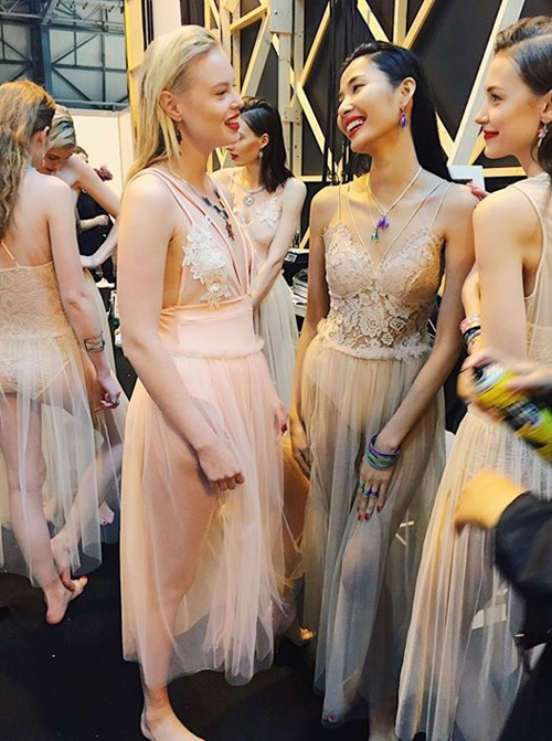 Hoàng Thùy (thứ 2 bên phải) khoe dáng sexy trong trang phục mỏng tang bên dàn người mẫu ngoại quốc.