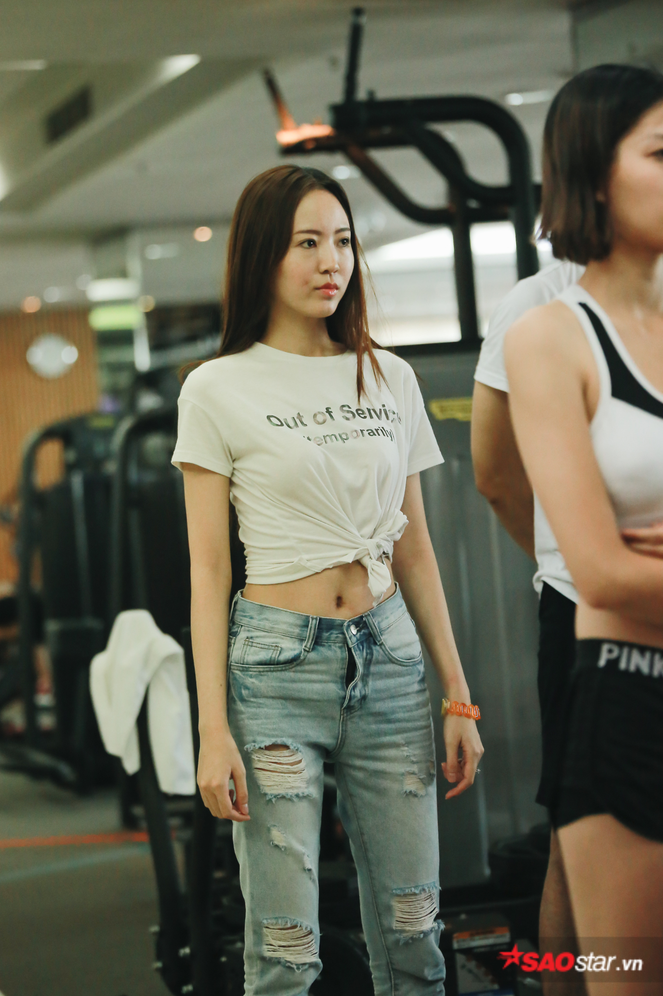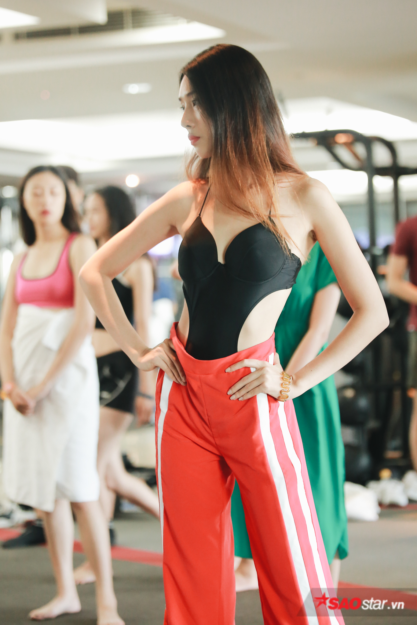 Sau phần tập luyện giải phóng hình thể, các thí sinh tiếp tục xuống hồ bơi để thử thách bản thân cùng màn pose dáng dưới nước.