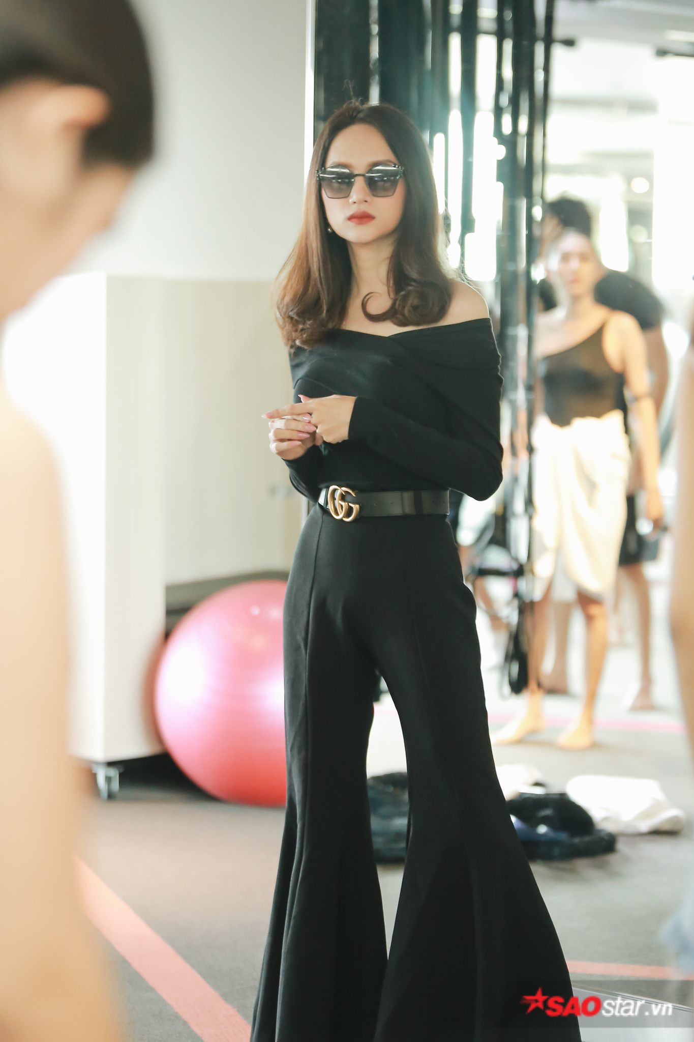 Hương Giang xuất hiện với cả cây đen cá tính, trực tiếp hướng dẫn dàn chân dài.
