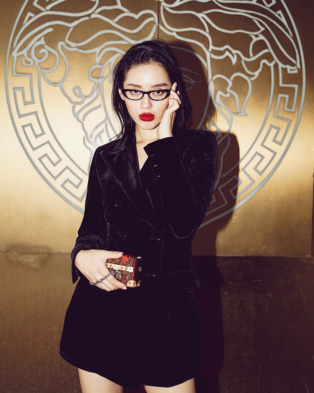 Tưởng chừng bộ váy nhung đen sẽ khiến bản thân trở nên già dặn, nhưng nhờ cách phối cùng chiếc túi Louis Vuitton phiên bản nhỏ cùng mắt kính, Khánh Linh The Face đã thật sự thời thượng trong mắt công chúng.