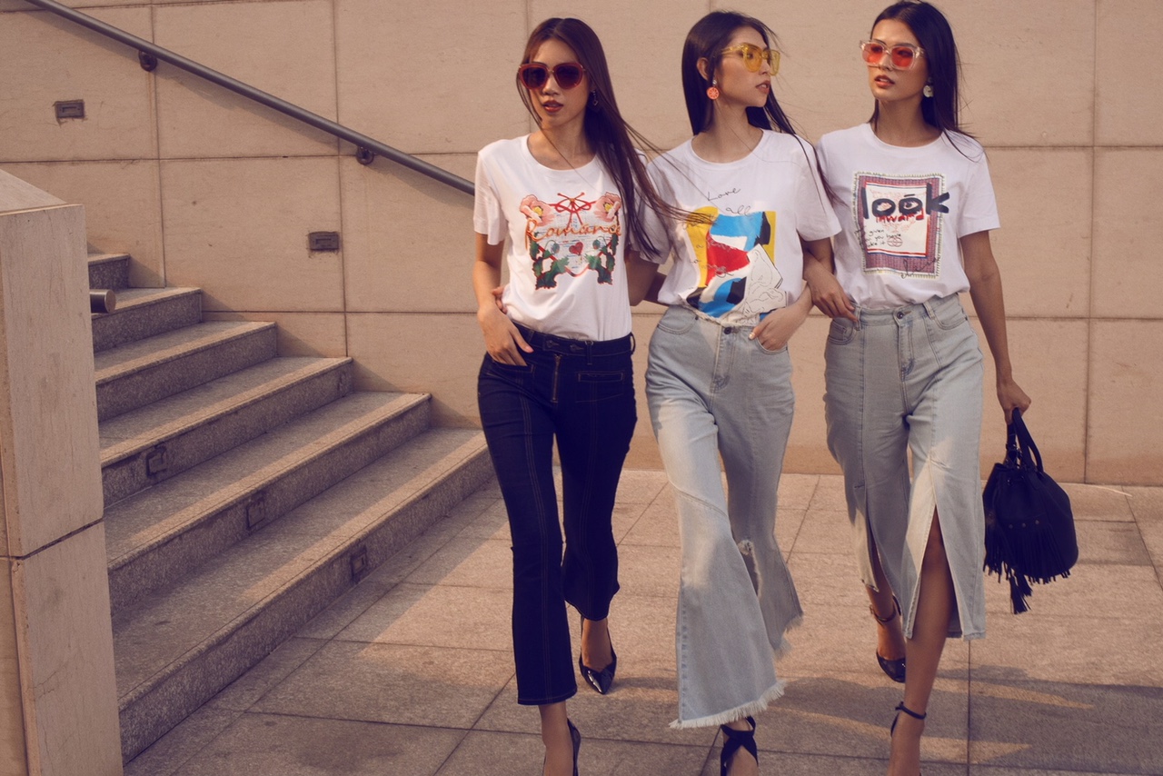 Ngoài ra, những thiết kế bay bổng, ngọt ngào nhưng vô cùng xu hướng của hoạ tiết print mix cũng được ba cô nàng áp dụng, từ áo thun trắng in ấn basic…