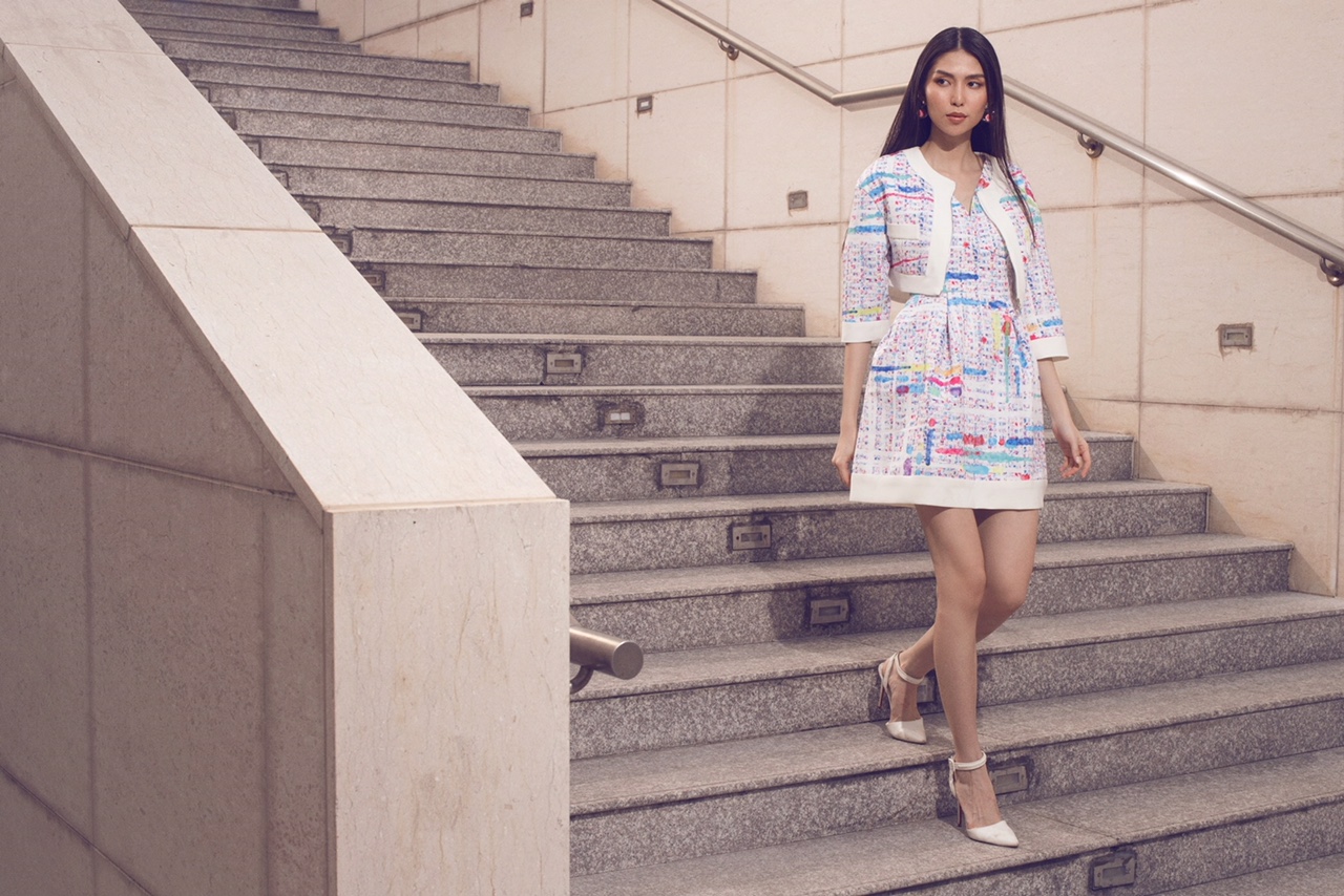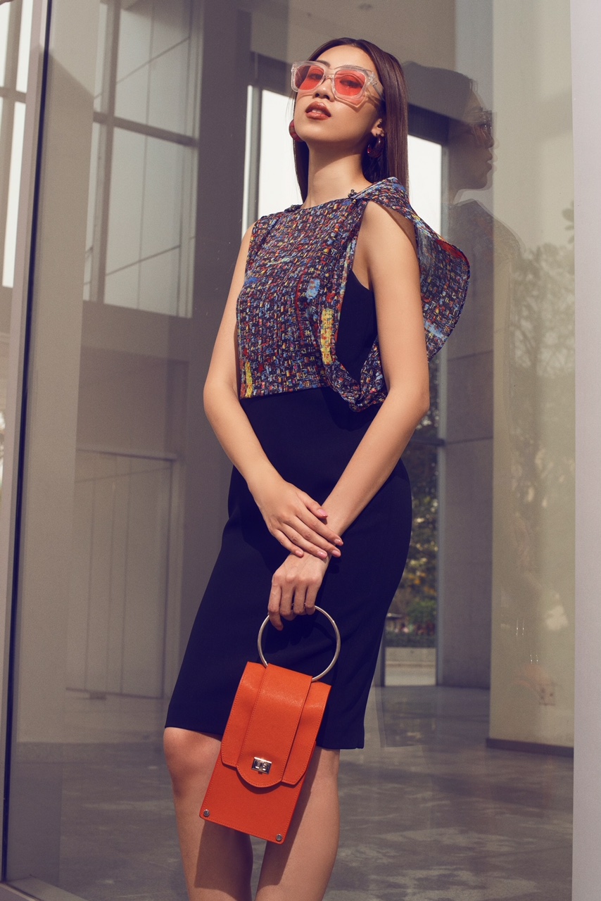 Kết hợp cùng phụ kiện túi hộp cứng cáp, Kikki Lê đã có cho mình vẻ ngoài thời thượng, thanh lịch.