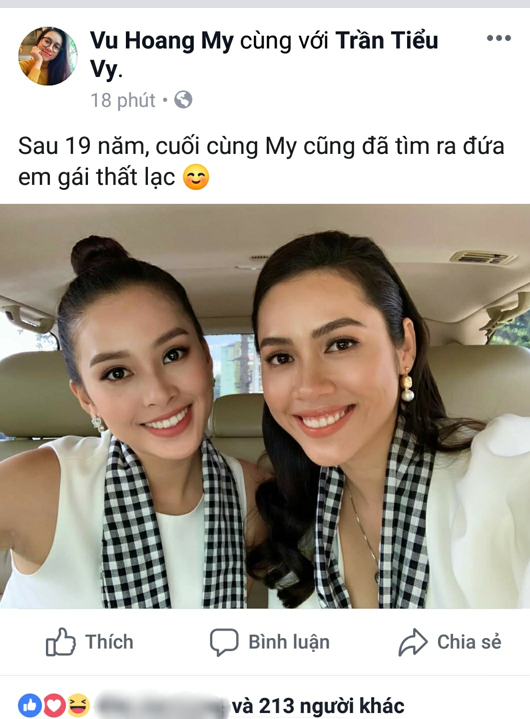 Mới đây, chính á hậu Hoàng My đã phải xác nhận sự giống nhau của hai người trên trang cá nhân. Dòng trạng thái “tìm được chị em thất lạc” của người đẹp vừa gây bất ngờ, vừa khiến không ít khán giả bật cười thích thú.