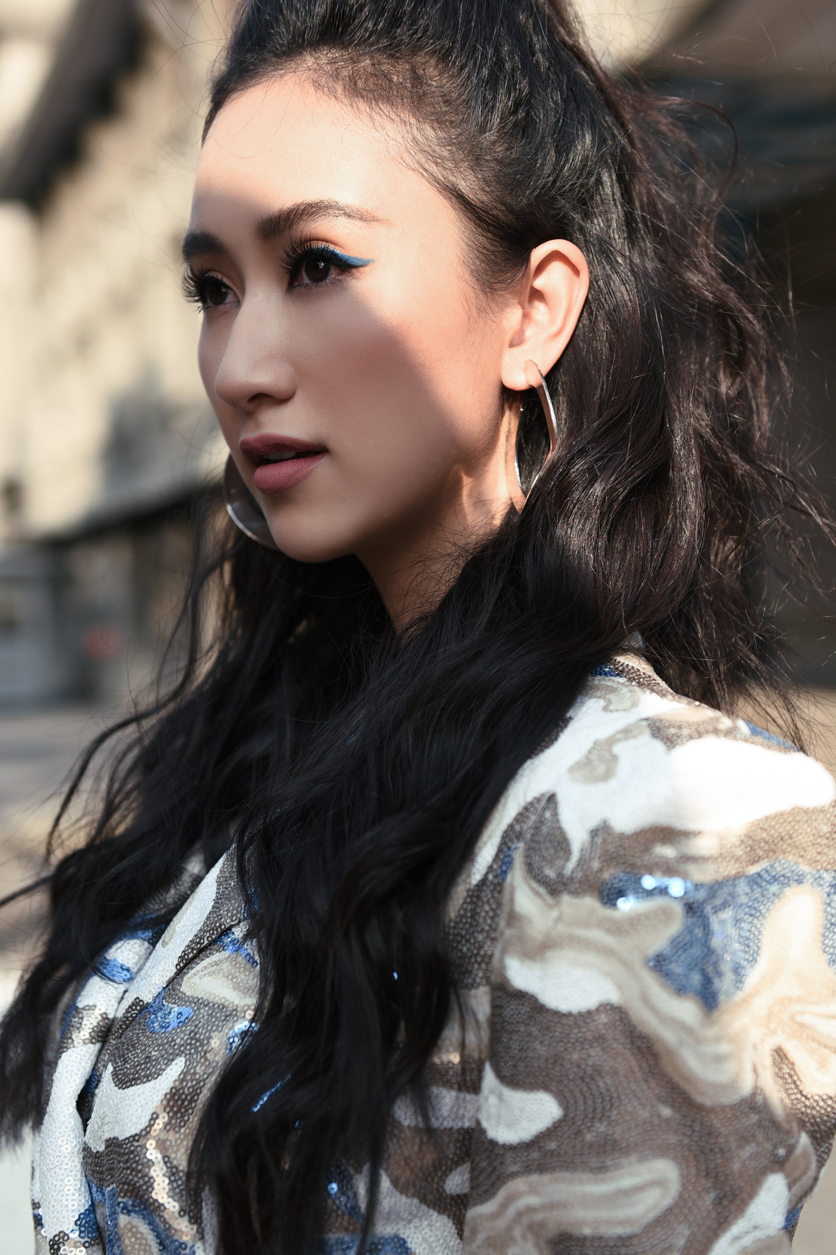 Đôi mắt kẻ xếch cùng mái tóc xoăn xù cũng khá lạ lẫm so với phong cách hoa hậu trước đây.