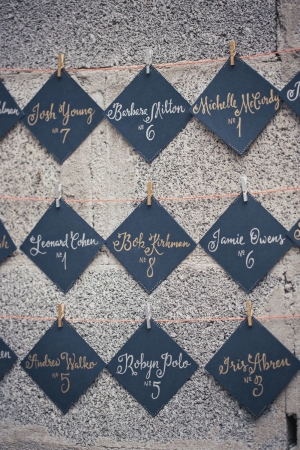 Không gian tầng thượng toà nhà Vinegar Hill House hướng về phố Manhattan với những bức tường lát gạch đỏ mòn theo dòng chảy thời gian cạnh chiếc cầu BrookLyn là nơi hợp lí nhất để thực hiện hôn lễ “vintage” này. Trong không gian vừa đủ, không quá rộng, không ồn ào, những chiếc bàn được đính lá ô liu, ghế tựa vàng đồng và đan voan ấm áp đã tôn một NewYork quá khứ hoàn hảo trong mắt khách dự tiệc.