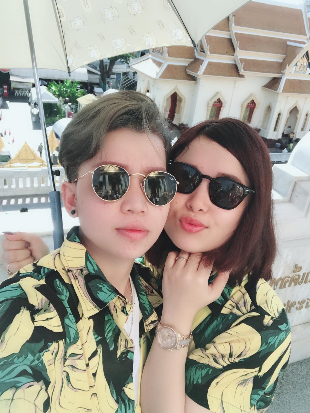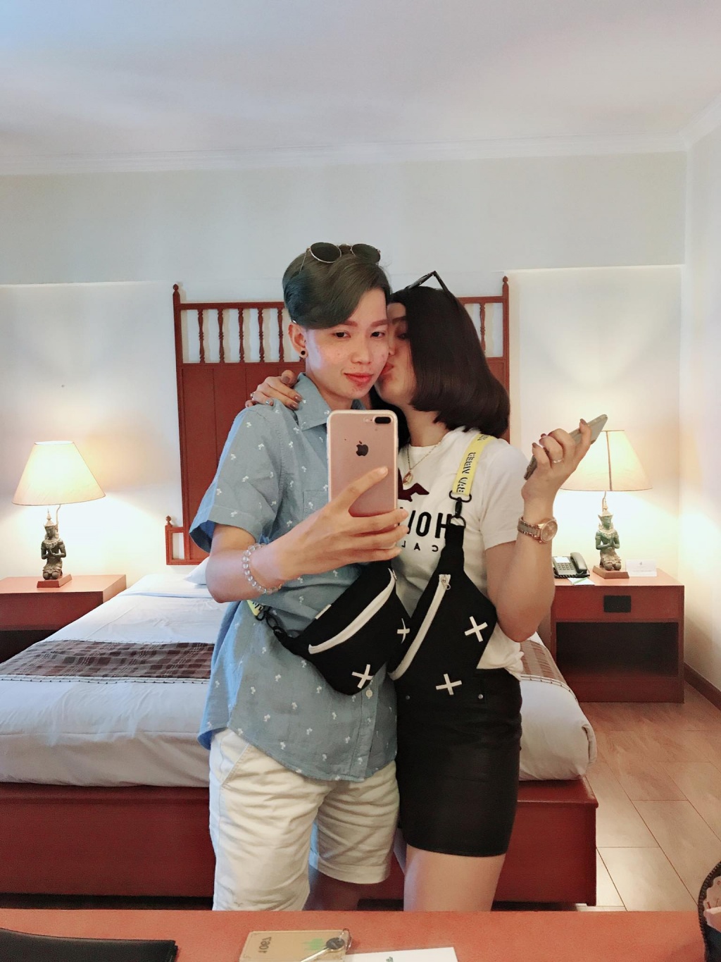 Quên chia sẻ: “Kỷ niệm lần đầu tiên Linh đón mình ở sân bay sẽ không bao giờ quên. Lúc đầu là cảm giác hồi hộp để nhìn thấy trực tiếp người mình thương suốt bao lâu trên mạng. Bản thân mình lúc đó cũng khá lo lắng và hồi hồi vì không hiểu tính cách của người yêu ở ngoài đời thực có hòa hợp như trên mạng không”.