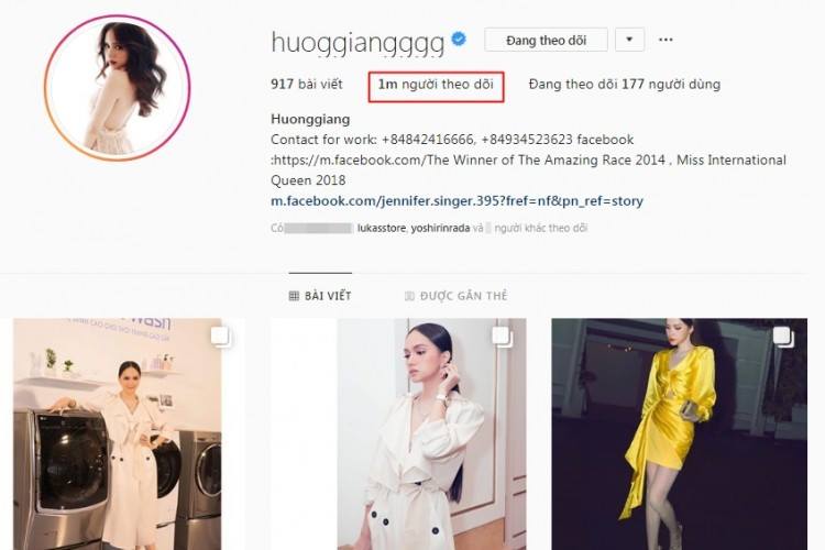 Instagram của Hương Giang đã đạt 1 triệu người theo dõi