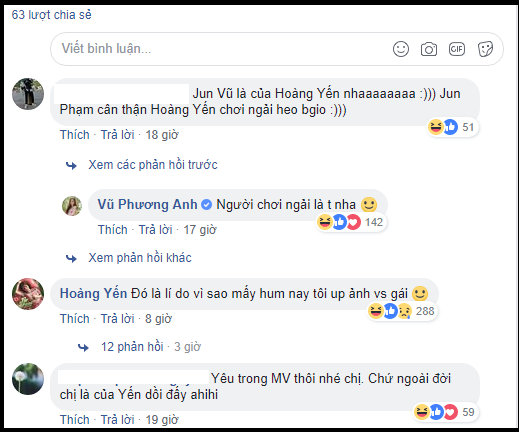 Ngay lập tức, các fans đã nhanh chóng đoán được X chính là Hoàng Yến, với bằng chứng là một tấm poster khác có mặt Hoàng Yến. Và Hoàng Yến cũng đã ”đáp trả” một cách hờn dỗi bên dưới post này.