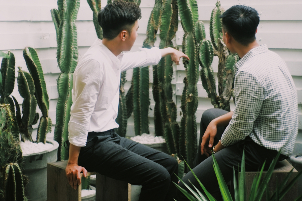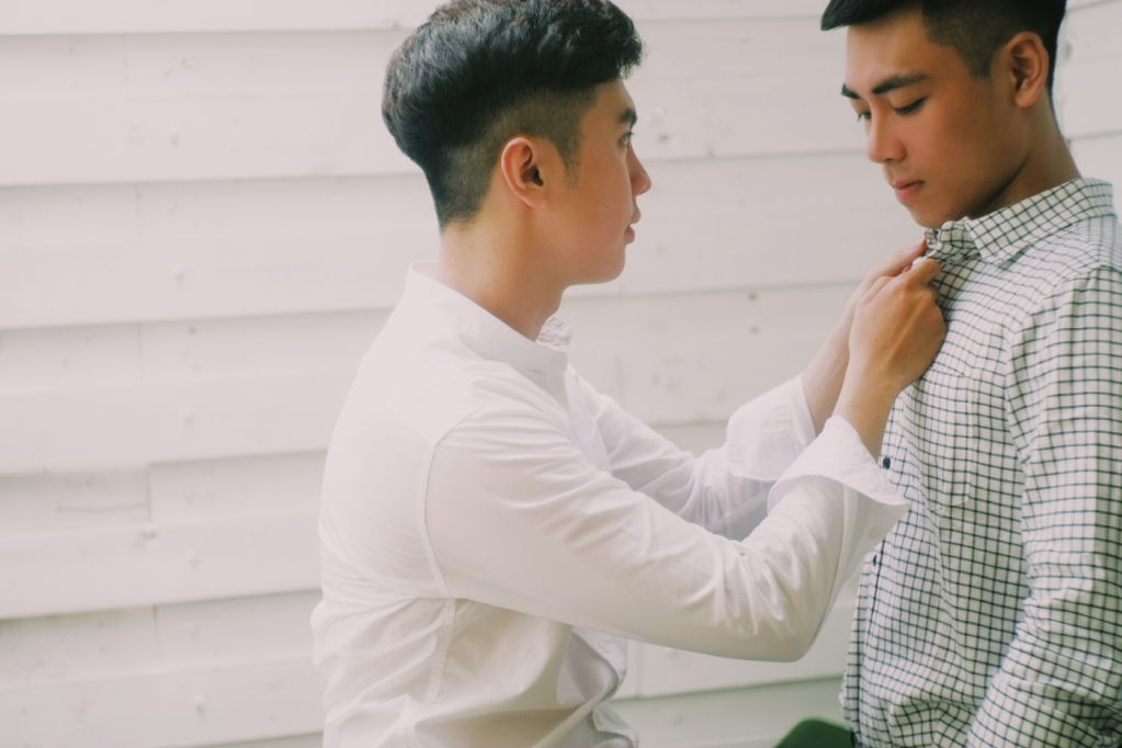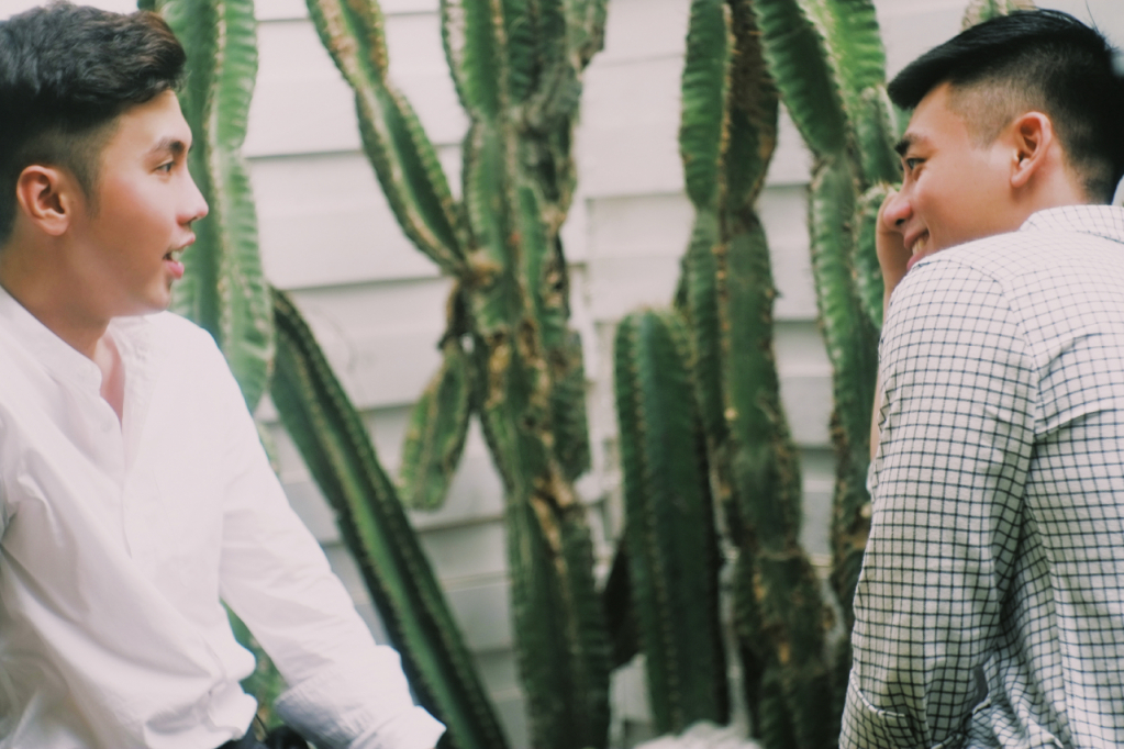 Cái đẹp của bộ ảnh không chỉ bởi nhiếp ảnh gia giỏi nắm bắt được những khoảnh khắc “tình bể bình” mà còn là bởi nhan sắc điển trai của cặp đôi. Được biết nhân vật chính là Lê Hoàng Khang (sinh năm 1995, hiện đang là Tiếp viên hàng không, chủ một studio và chủ quán café) và Nguyễn Khánh Sự (thường gọi là Pho, sinh năm 1999, hiện là HLV thể hình cá nhân và người mẫu tự do).