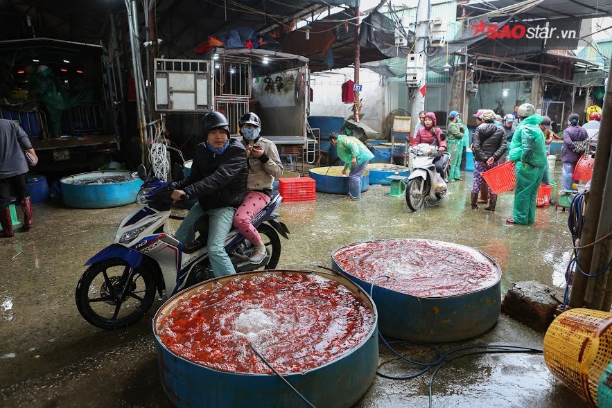 Mỗi ngày các tiểu thương ở chợ cá Yên Sở nhập hàng tấn cá chép đủ loại để phục vụ nhu cầu của người dân.