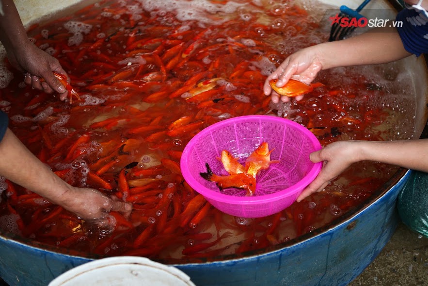 Nhiều tiểu thương đang chọn cá chép rất kỹ để đưa về các chợ dân sinh ở Thủ đô.