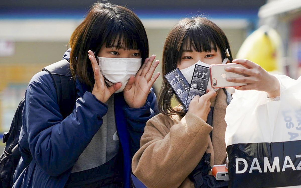 Du khách đeo khẩu trang để ngăn chặn virus corona chụp ảnh selfie tại một khu mua sắm ở Seoul, Hàn Quốc, ngày 24 tháng 2 năm 2020. (Ảnh: REUTERS/Kim Hong-Ji TPX IMAGES OF THE DAY)