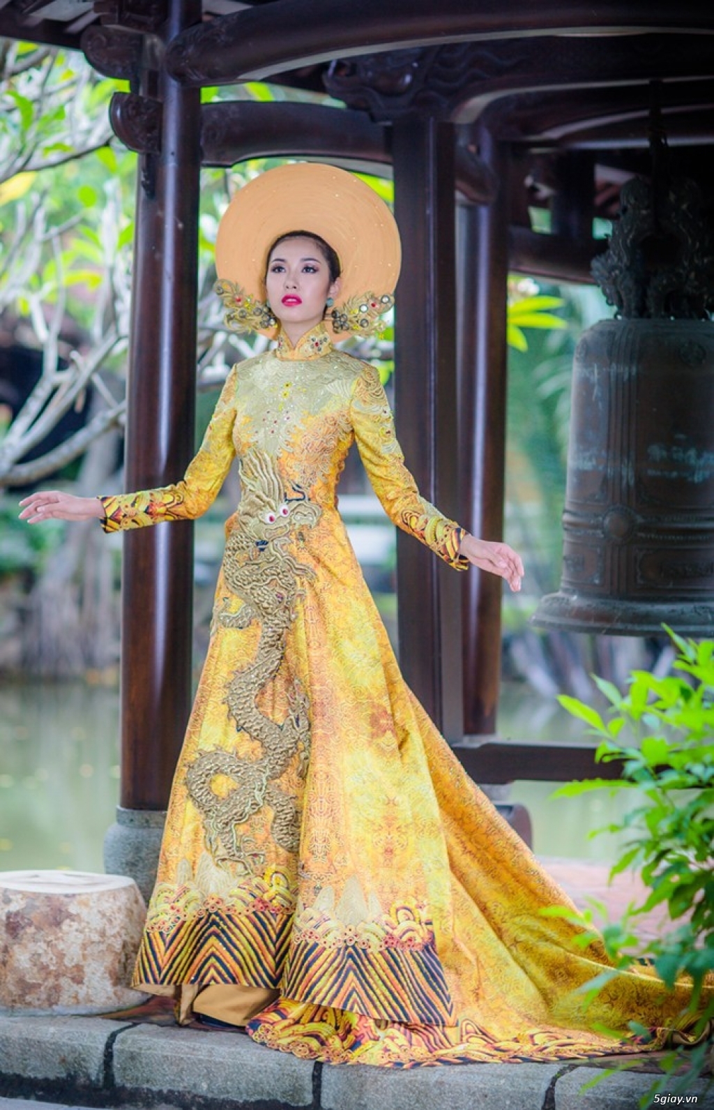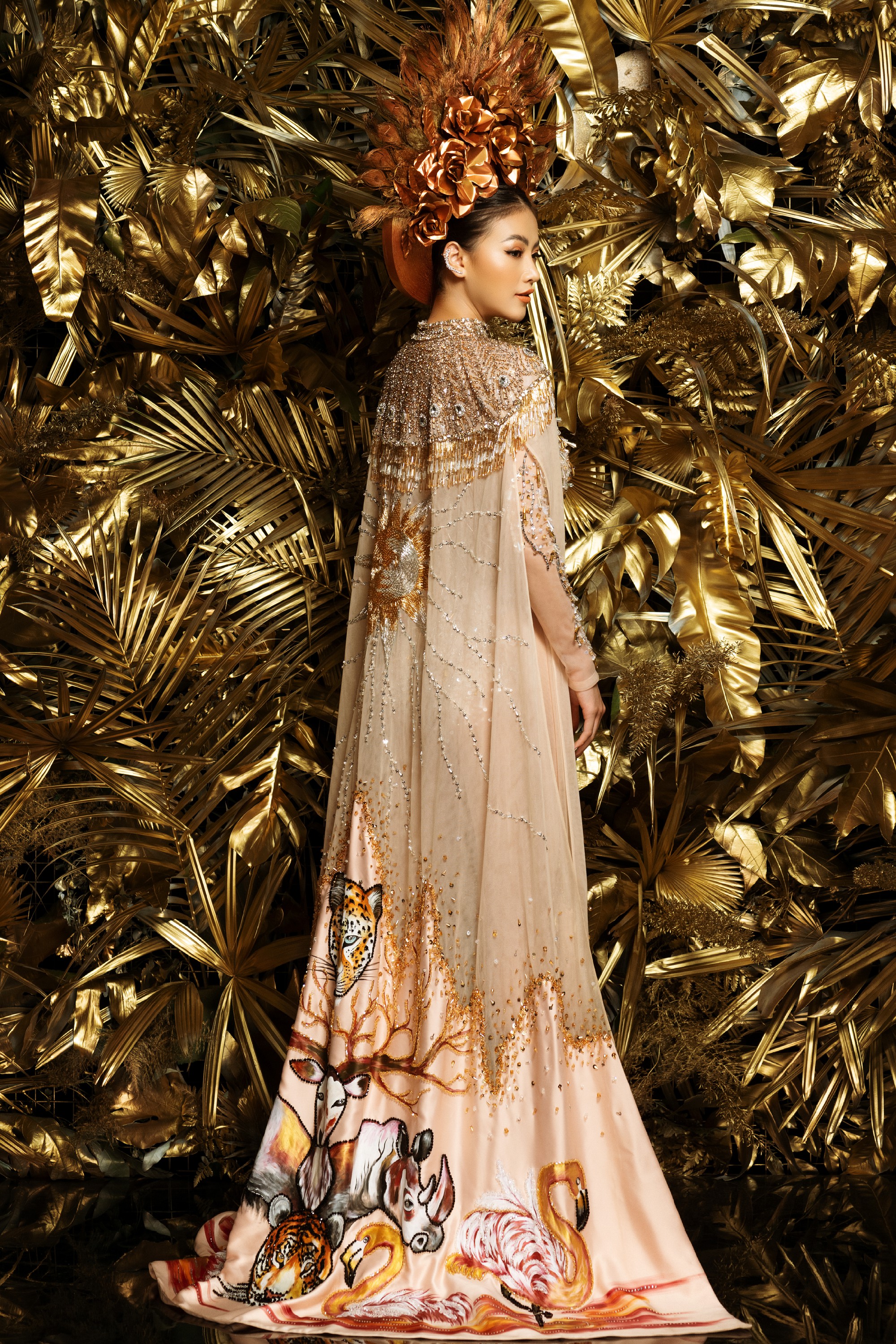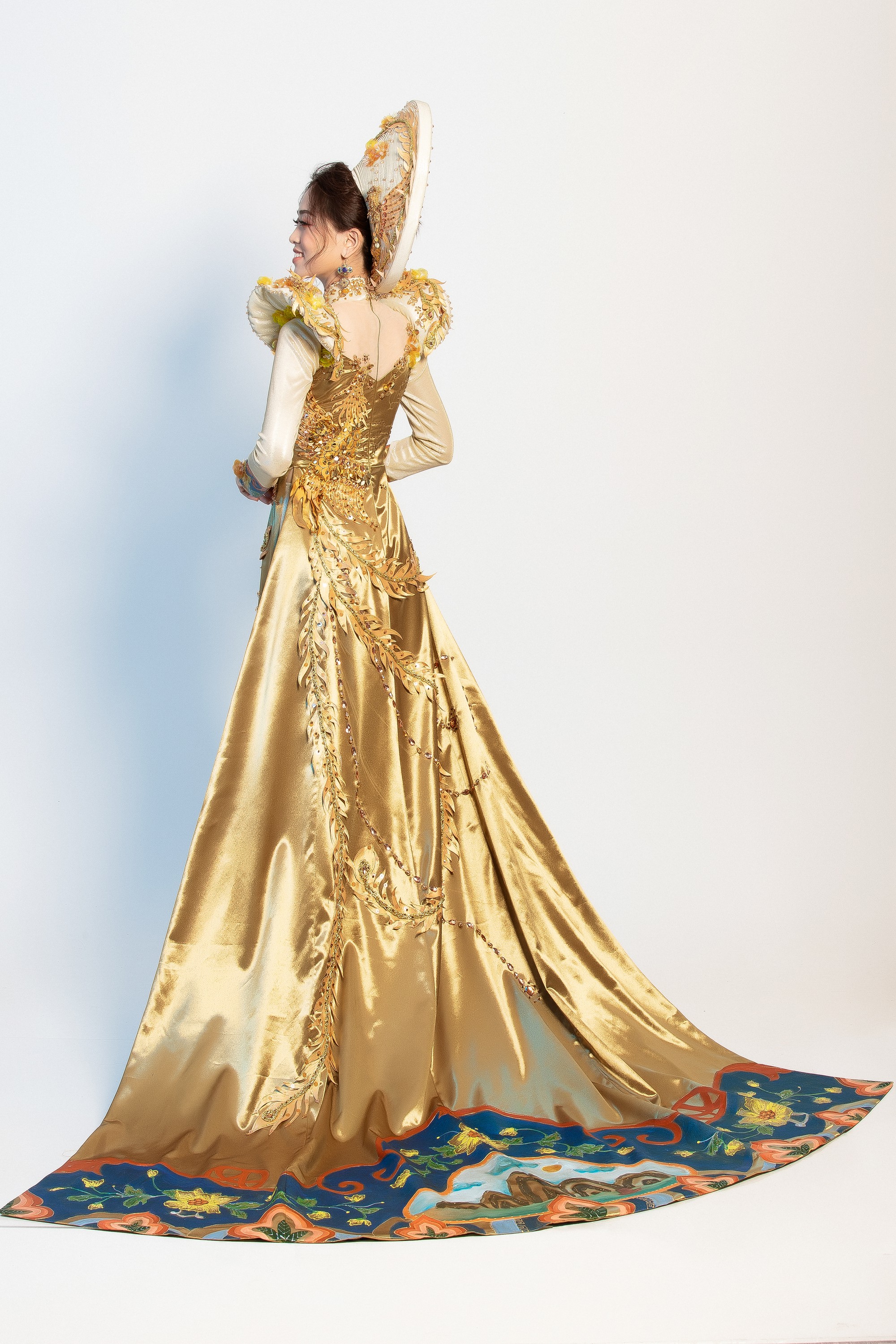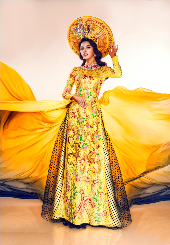 Bộ trang phục dân tộc phản ánh đúng tinh hoa văn hóa dân tộc Việt với hình ảnh con rồng phương Đông hướng về mặt trời. Lấy tông màu vàng làm chủ đạo, vừa toát ra vẻ uy nghiêm vừa lộng lẫy khi trình diễn trên sân khấu.
