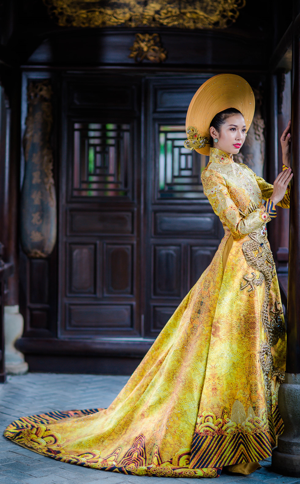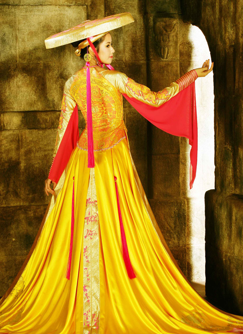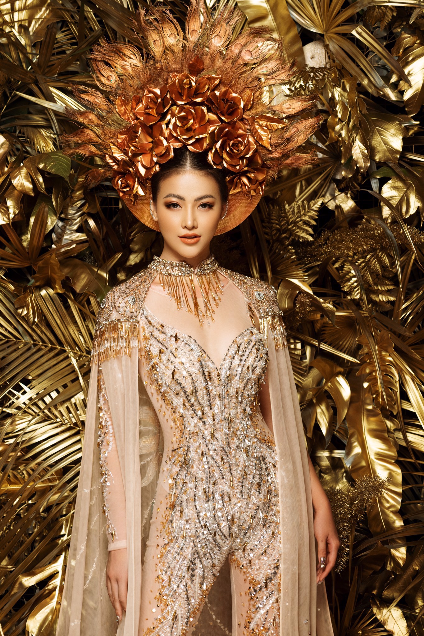 Bộ trang phục dân tộc phản ánh đúng tinh hoa văn hóa dân tộc Việt với hình ảnh con rồng phương Đông hướng về mặt trời. Lấy tông màu vàng làm chủ đạo, vừa toát ra vẻ uy nghiêm vừa lộng lẫy khi trình diễn trên sân khấu.