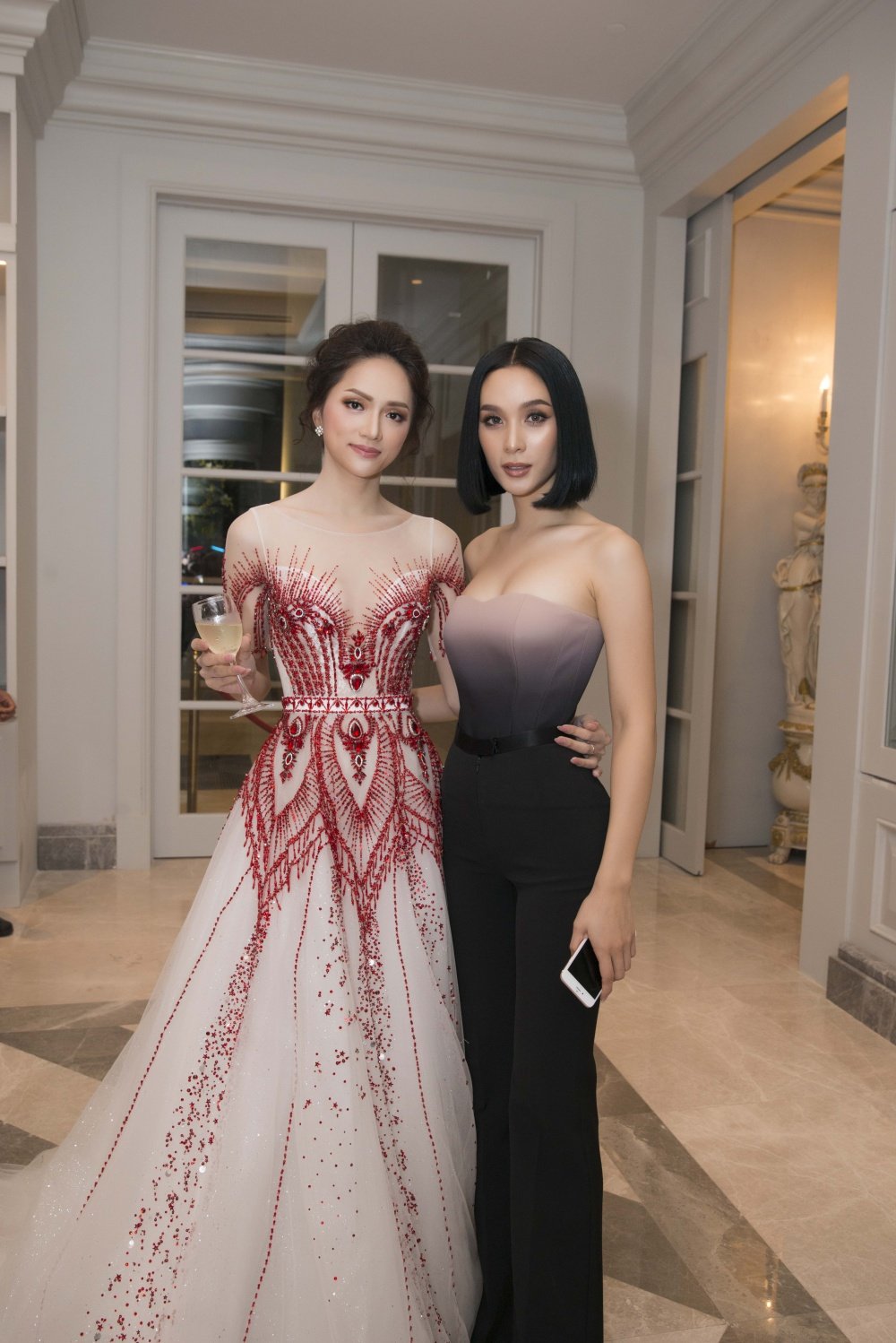 Không cần váy áo lượt là, không cần phụ kiện hàng hiệu, nhưng khi đứng cạnh cựu Hoa hậu Chuyển giới Quốc tế 2016, Hương Giang lại toát ra một vẻ đẹp của người kế nhiệm tương lai.