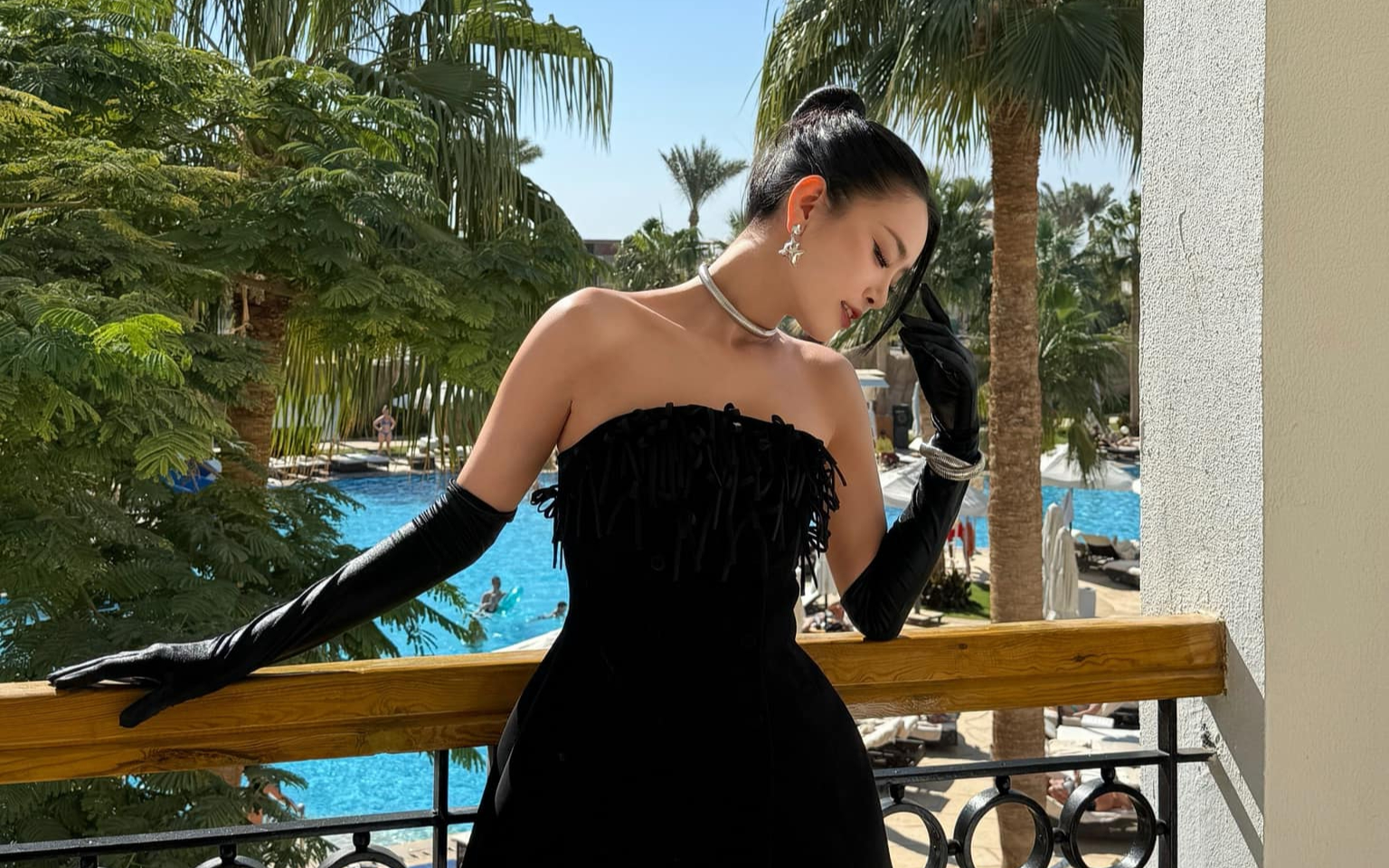 "Tôi có một tin buồn là tôi đã để quên sash ở Việt Nam. Tôi còn nhớ lúc chụp ảnh ở sân bay có đeo nhưng sang đến Ai Cập thì không thấy đâu. Tôi có nhờ mọi người ở nhà xem qua thì phát hiện sash đang trong hộp vương miện. Nên tôi không có sash đeo bên này", Á hậu Bùi Khánh Linh nói trong hoang mang.
