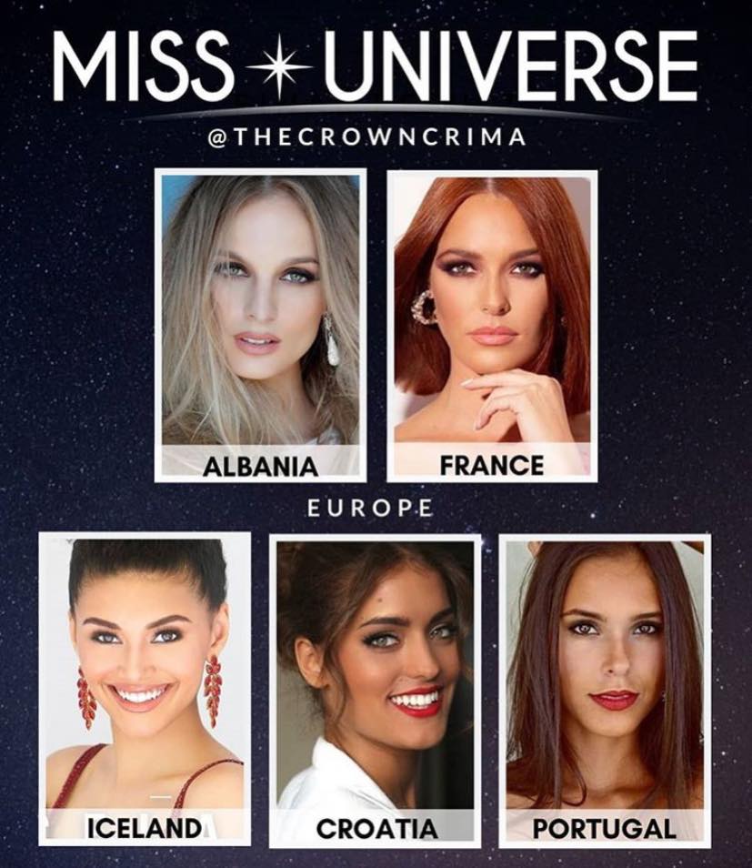 5 người đẹp Châu Âu lọt Top 20: Albania - Pháp - Iceland - Croatia - Portugal.