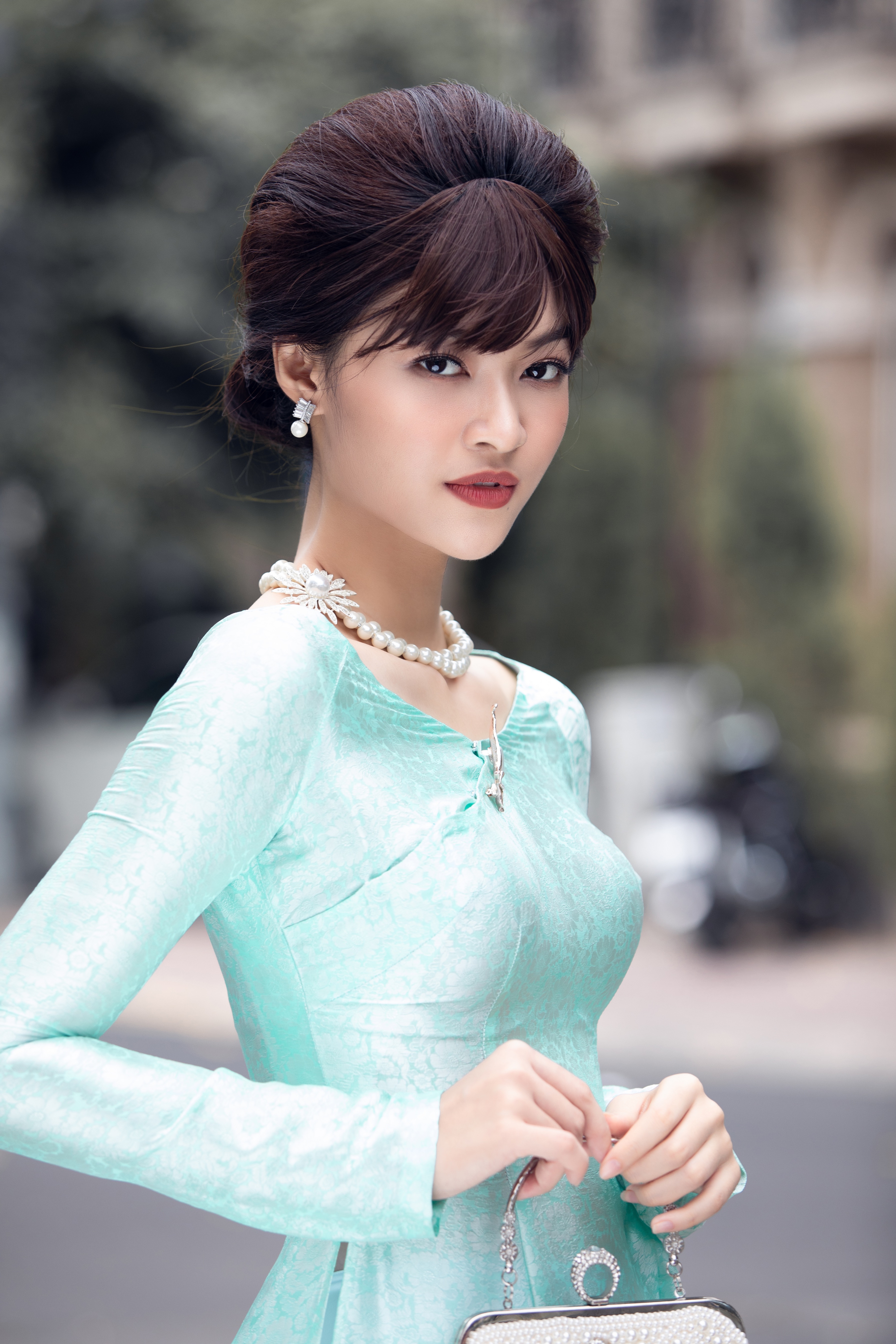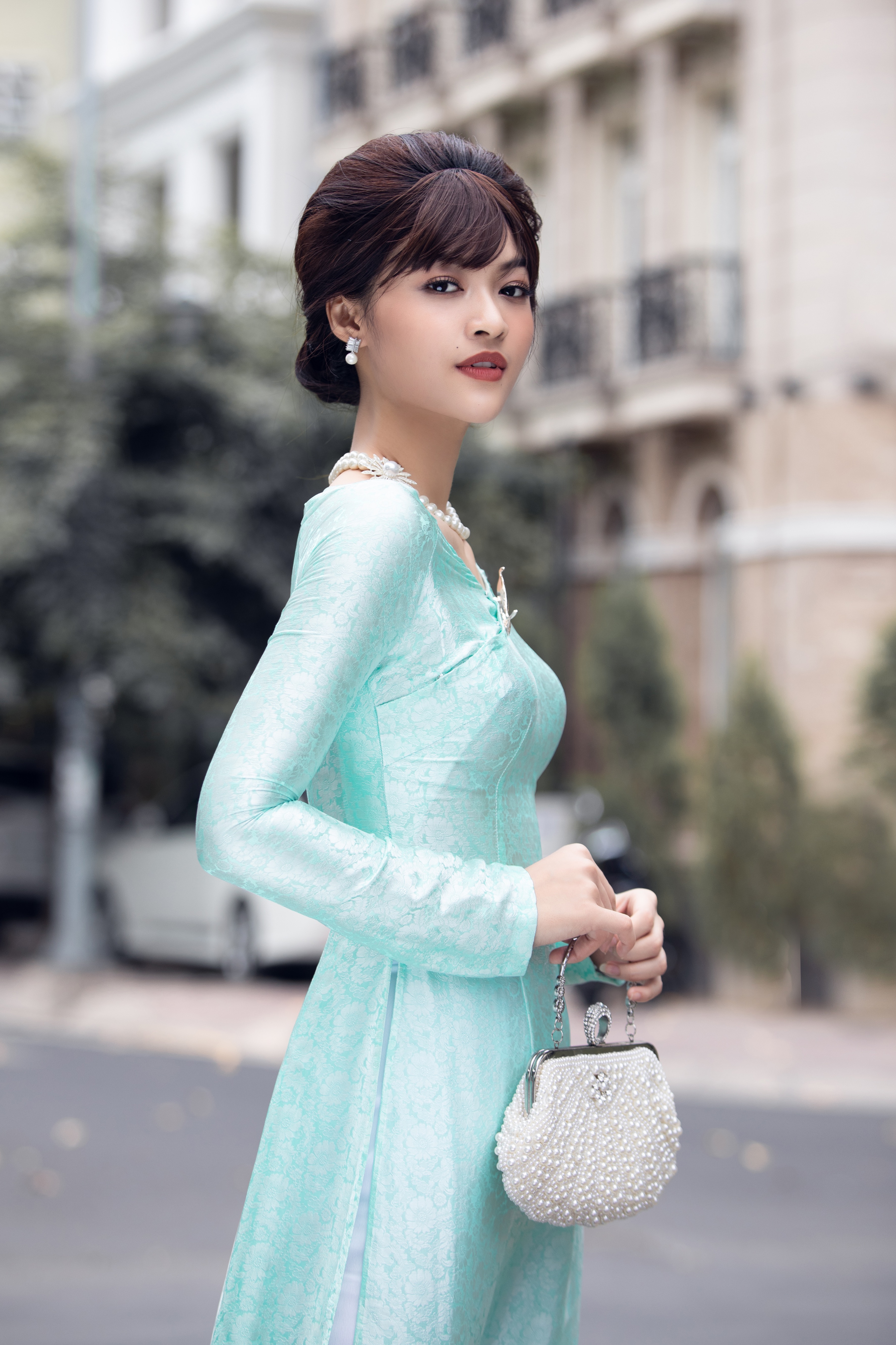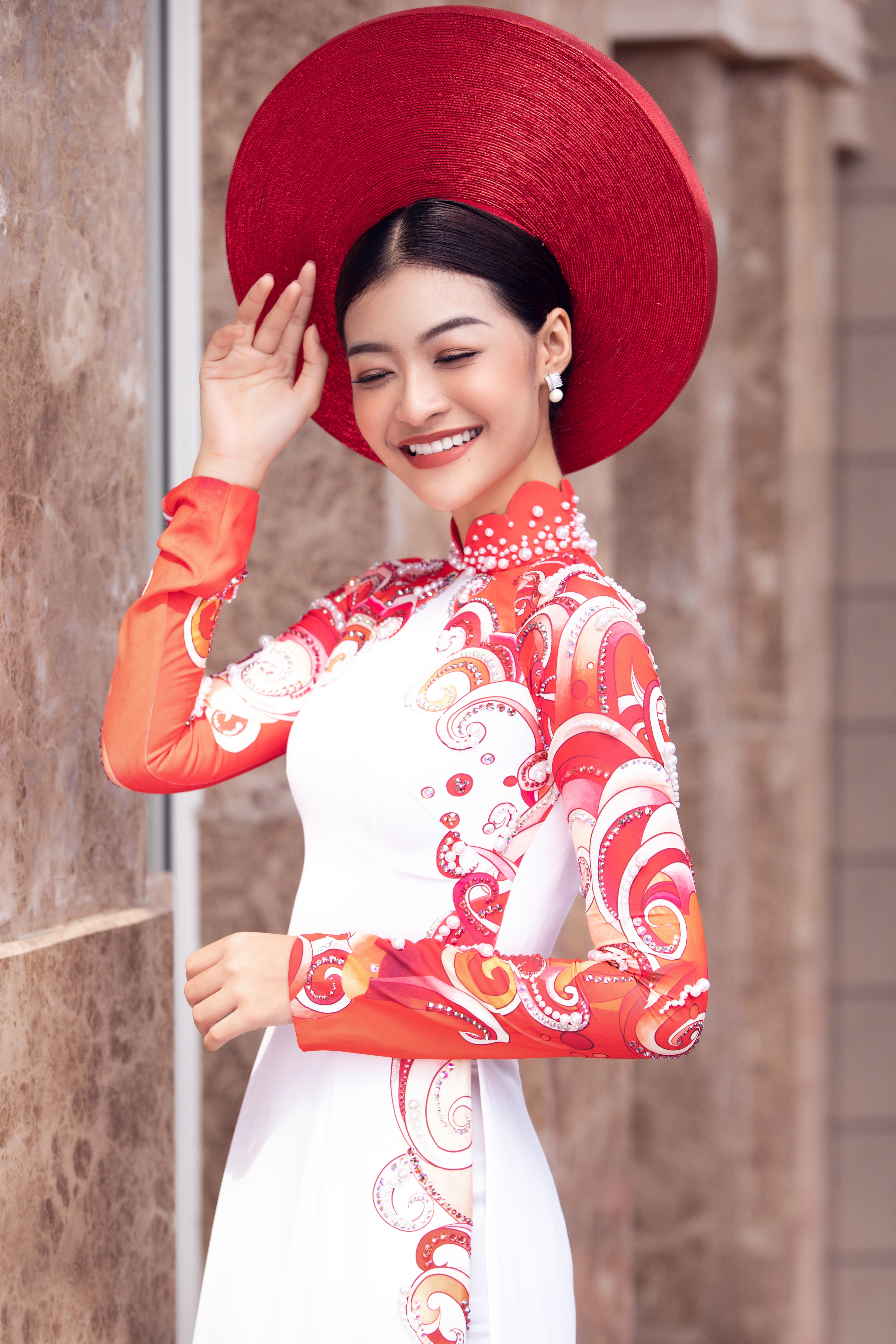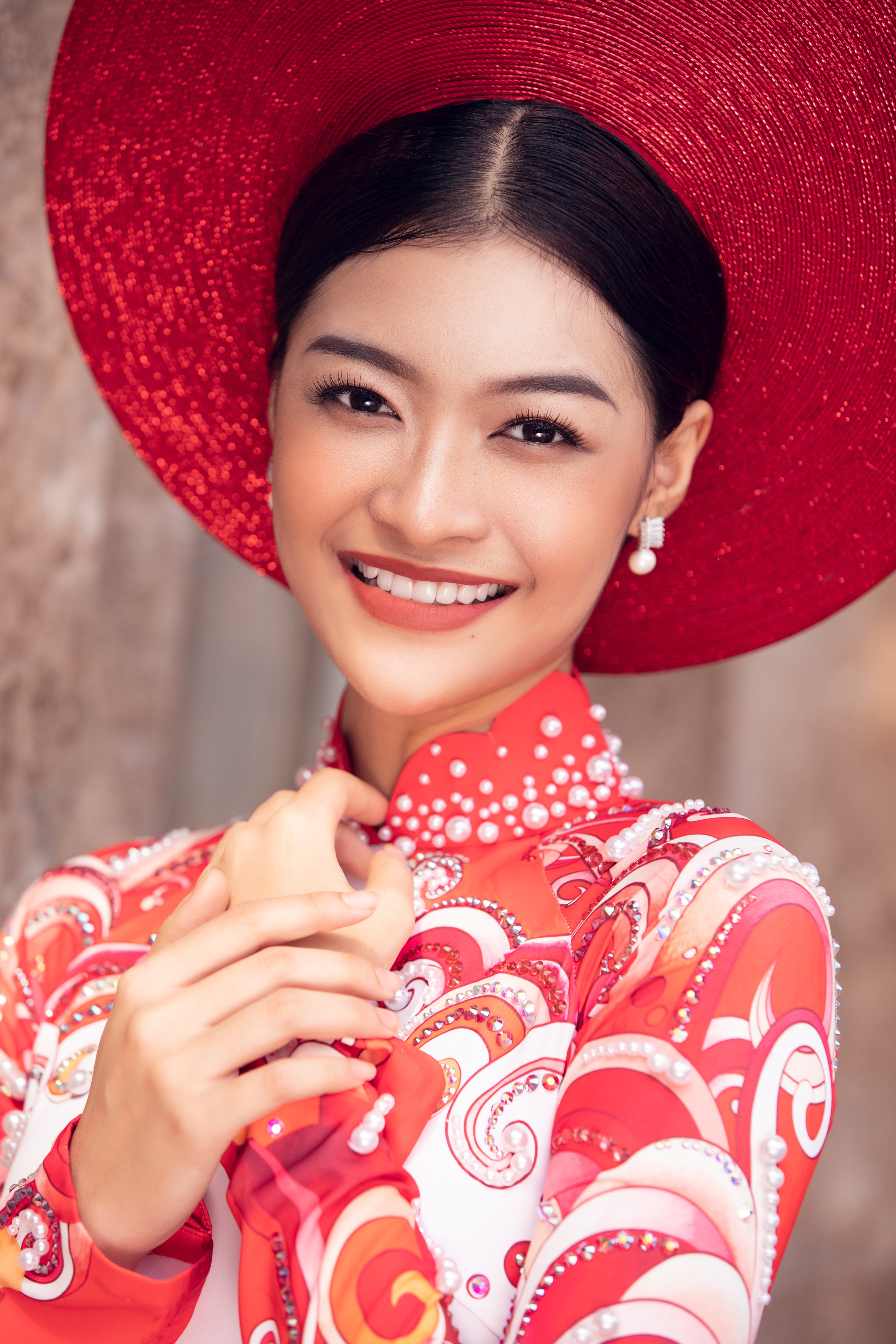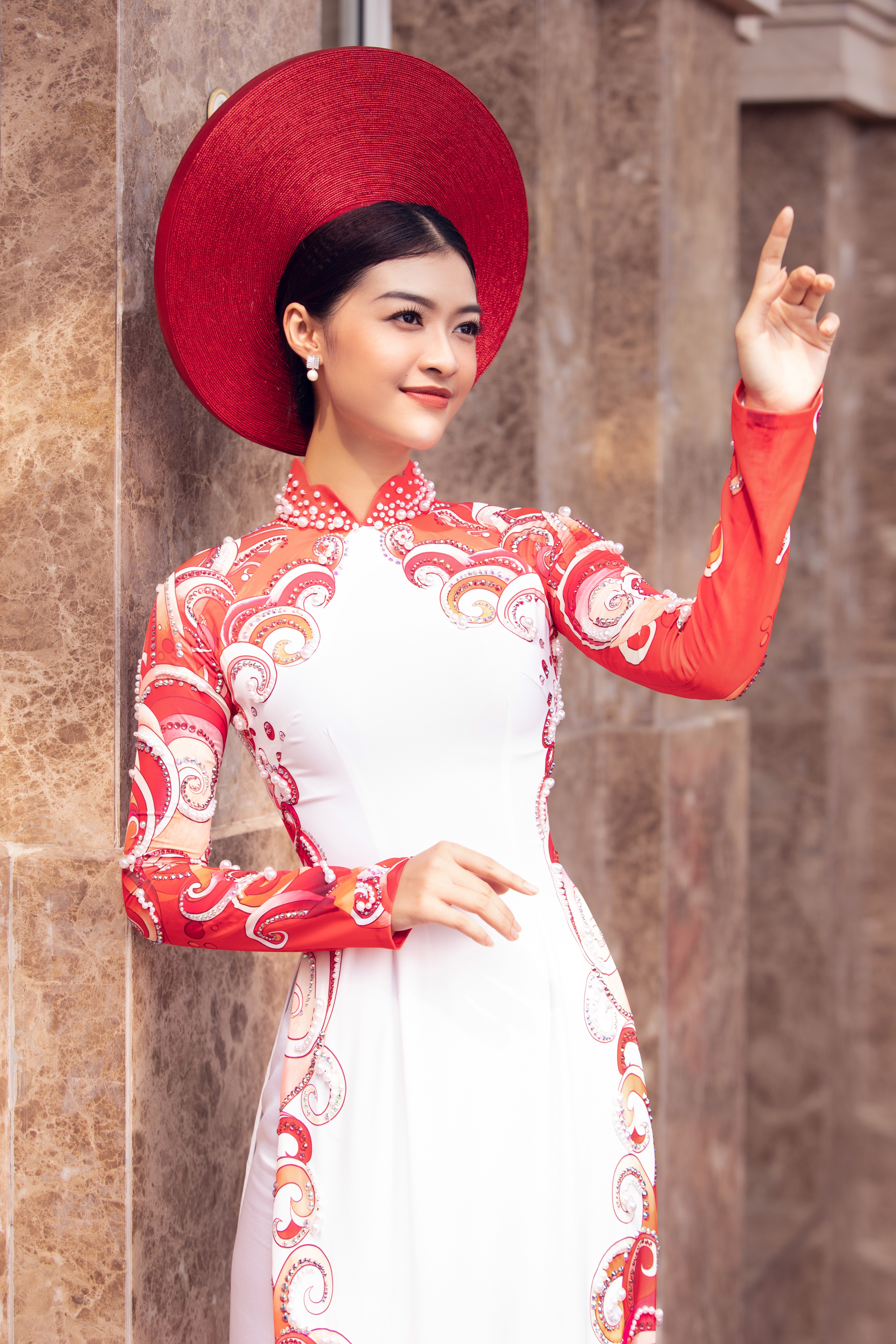 Mới đây, người đẹp khoác lên mình bộ quốc phục từng được á hậu Huyền My mang đến cuộc thi Miss Grand International 2017. Lấy ý tưởng hoa văn và pháp lam cung đình Huế làm chủ đạo, với chất liệu gấm tông màu đỏ vàng trên thân áo dài, vẻ đẹp của Kiều Loan lại thêm kiêu sa và quý tộc như dưới triều đại nhà Nguyễn.
