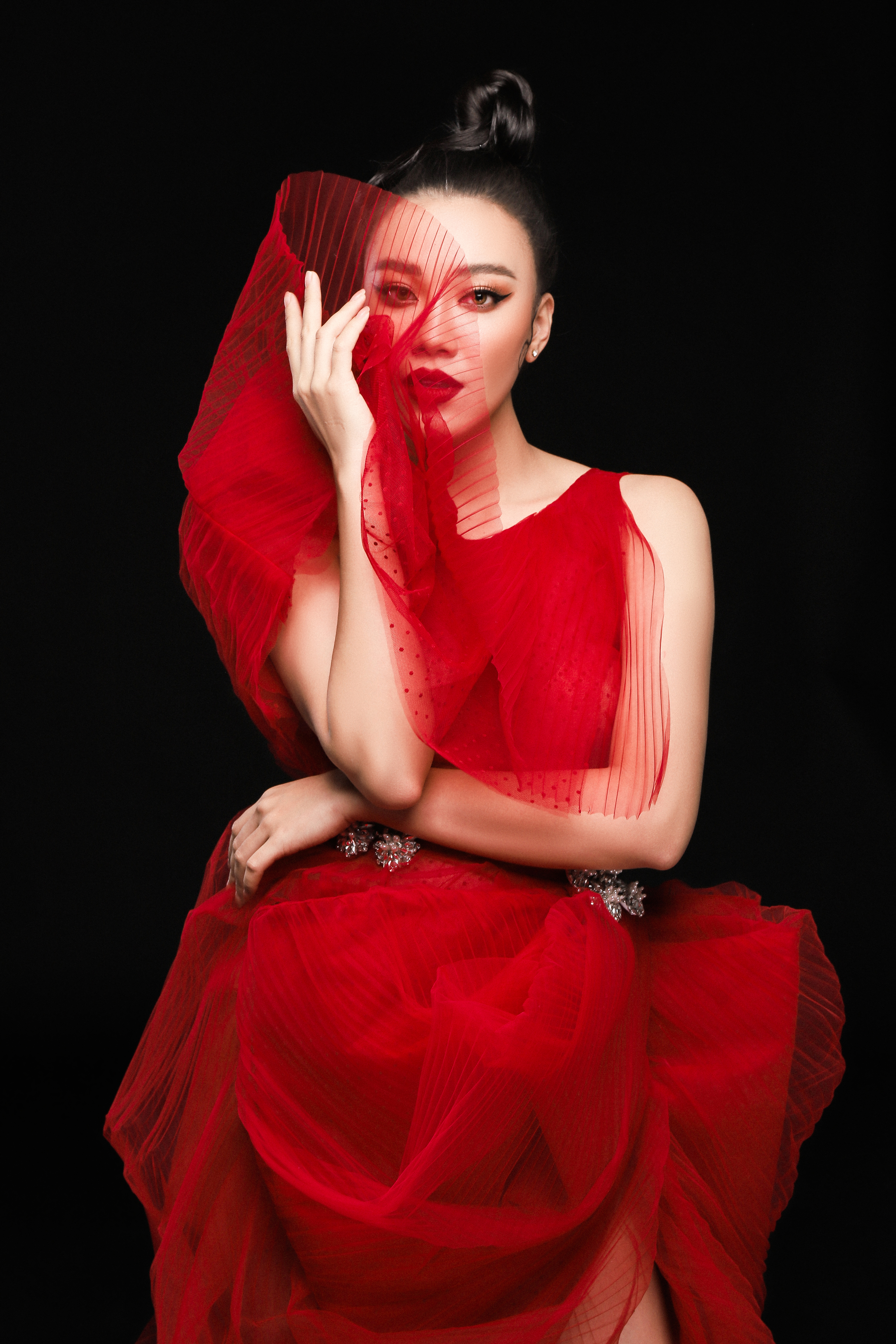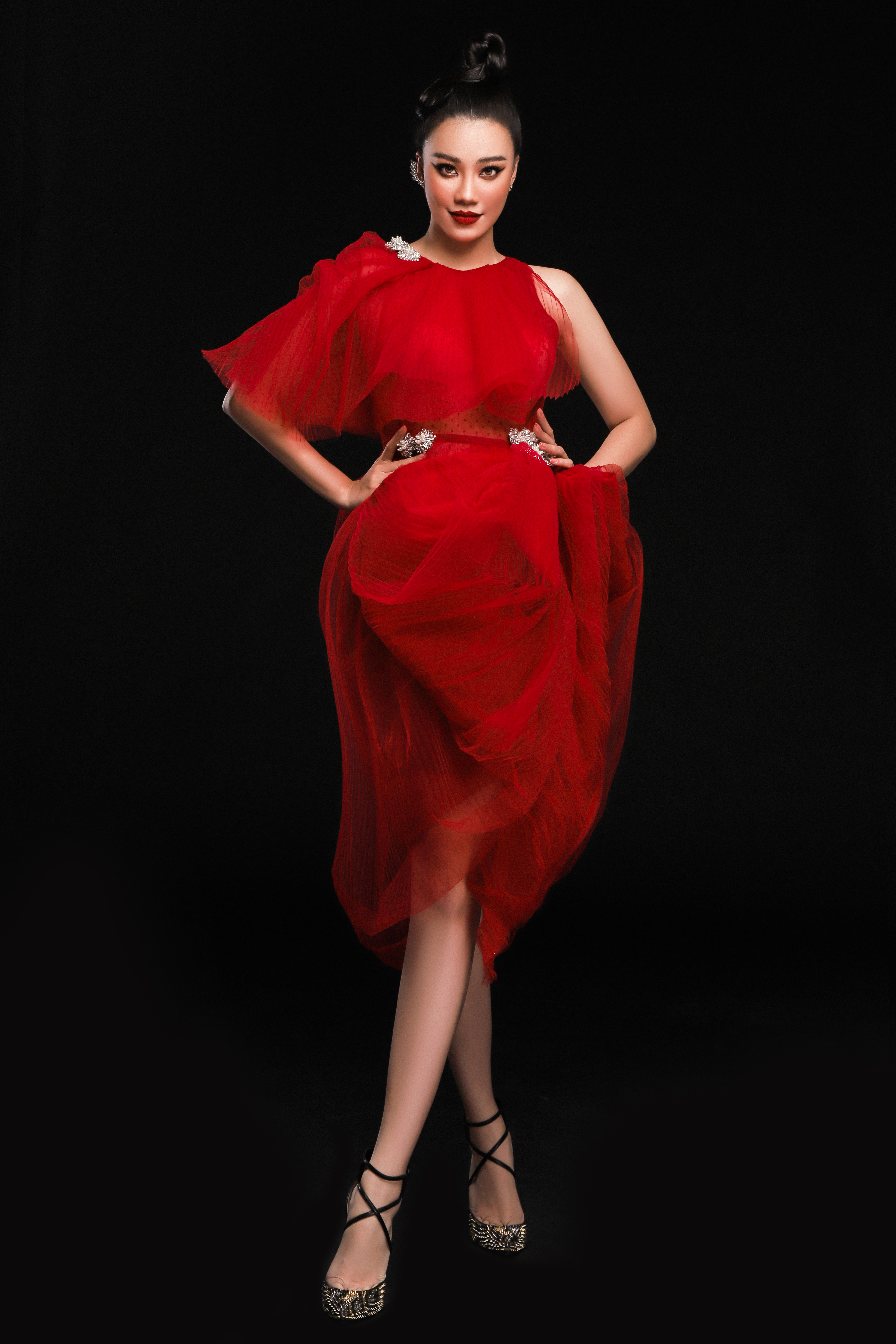 Rời xa hình ảnh của á hậu dịu dàng, thướt tha cùng với mái tóc suôn dài rất đỗi quen thuộc, Kim Duyên “tái xuất” với diện mạo hoàn toàn mới. Diện trên mình bộ váy màu đỏ rực bồng bềnh chất liệu lưới xếp li, không quá tham lam phụ kiện đi kèm, Kim Duyên hạ gục mọi ánh nhìn bằng đôi mắt hút hồn đầy ma mị. Từ đôi bông tai họa tiết lạ mắt với màu son đỏ đậm, á hậu 1 Hoa hậu Hoàn vũ Việt Nam 2019 chọn kiểu tóc búi cao để tôn lên gương mặt góc cạnh, đầy cá tính.