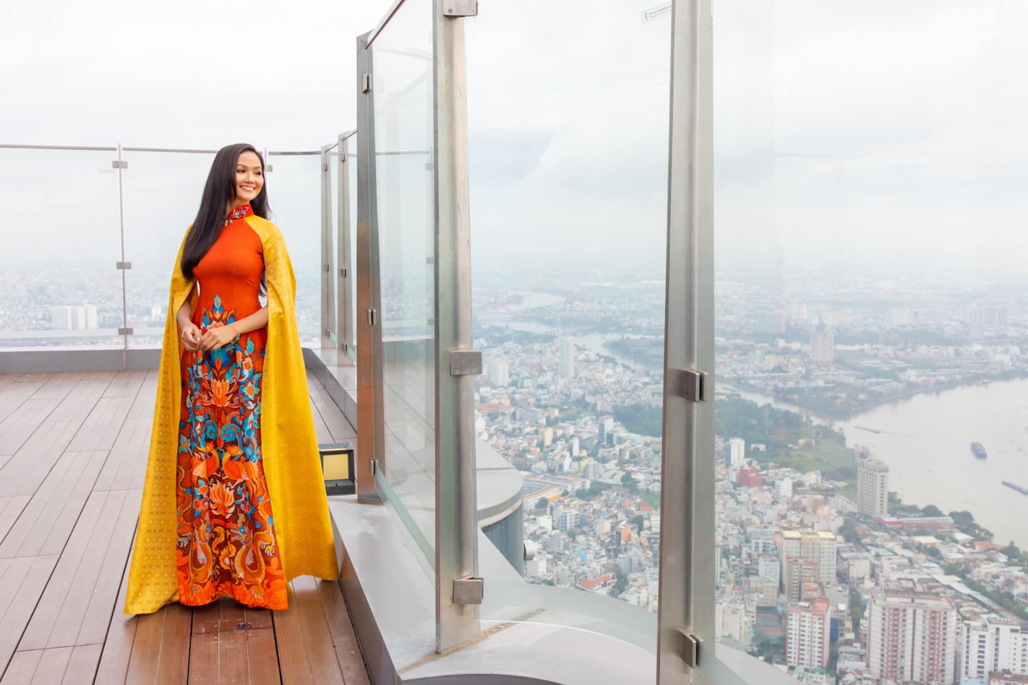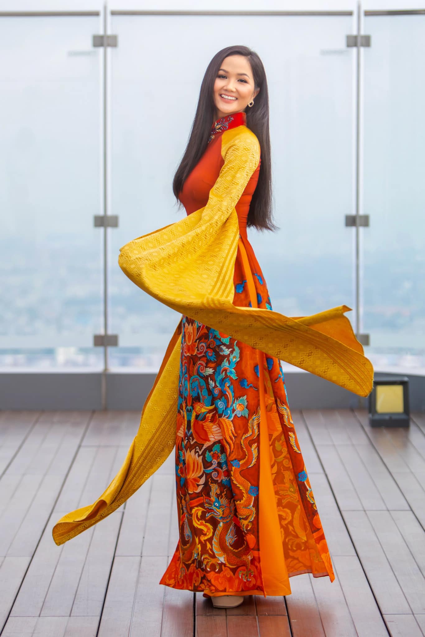 Hoa hậu Hoàn vũ Việt Nam 2017 – H’Hen Niê diện lại áo dài cũ từng mặc trong sự kiện giao lưu văn hóa ẩm thực tại Thái Lan.