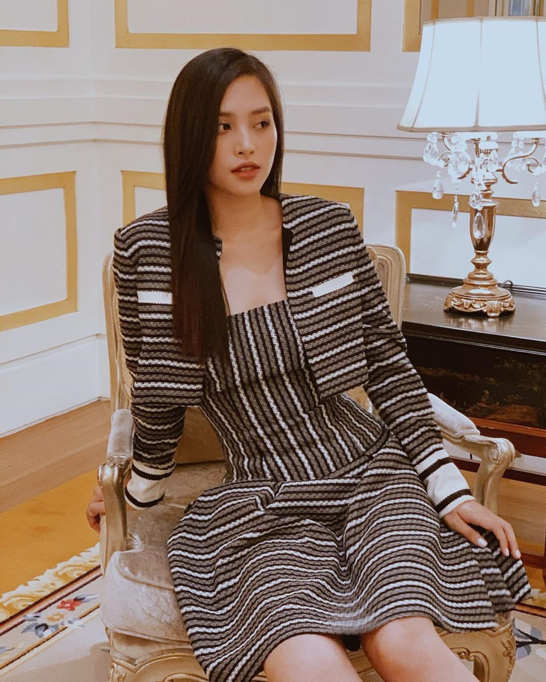 Hoa hậu Việt Nam 2018 – Trần Tiểu Vy đẹp dịu dàng và nữ tính trong thiết kế váy suit sọc caro sang trọng.
