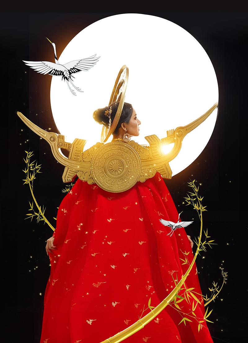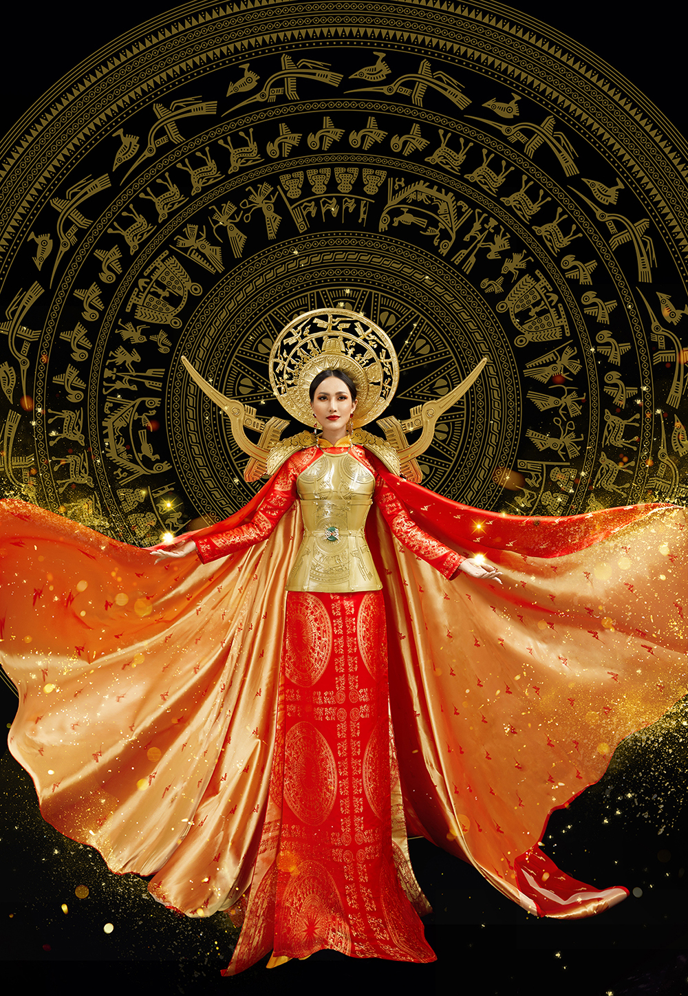 Thiết kế lấy cảm hứng từ vị tướng của dân tộc Việt Nam - Bà Triệu. Đây là thiết kế được NTK Văn Thành Công dành rất nhiều thời gian và tâm huyết cho đại diện Việt Nam tại cuộc thi năm nay.