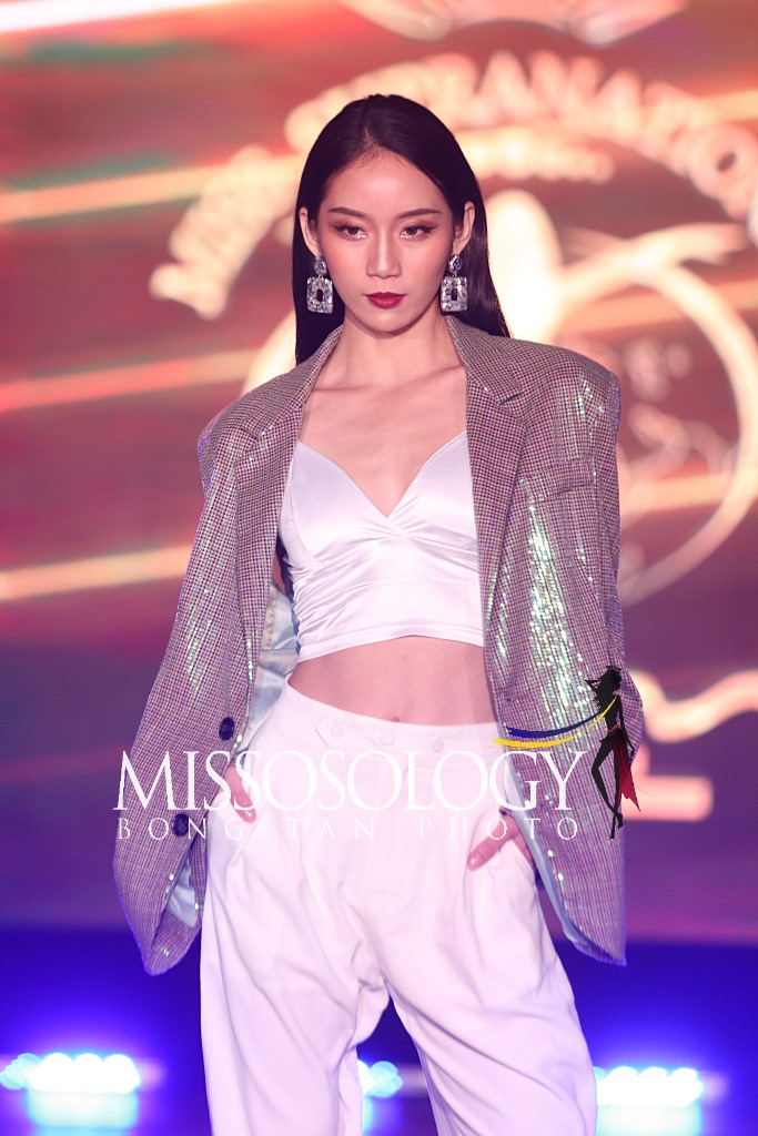 Sau phần thi Supra Model, Ngọc Châu tiếp tục tham gia thử thách chụp hình nhóm Glam Fashion. Diện bộ suit chất liệu nhung ánh kim, người đẹp Tây Ninh đọ dáng và thần thái cùng mỹ nhân Sri Lanka. Nếu thí sinh đứng cạnh thể hiện vẻ đẹp đầy thơ thẩn thì Ngọc Châu thu hút bởi ánh mắt sắc lạnh.
