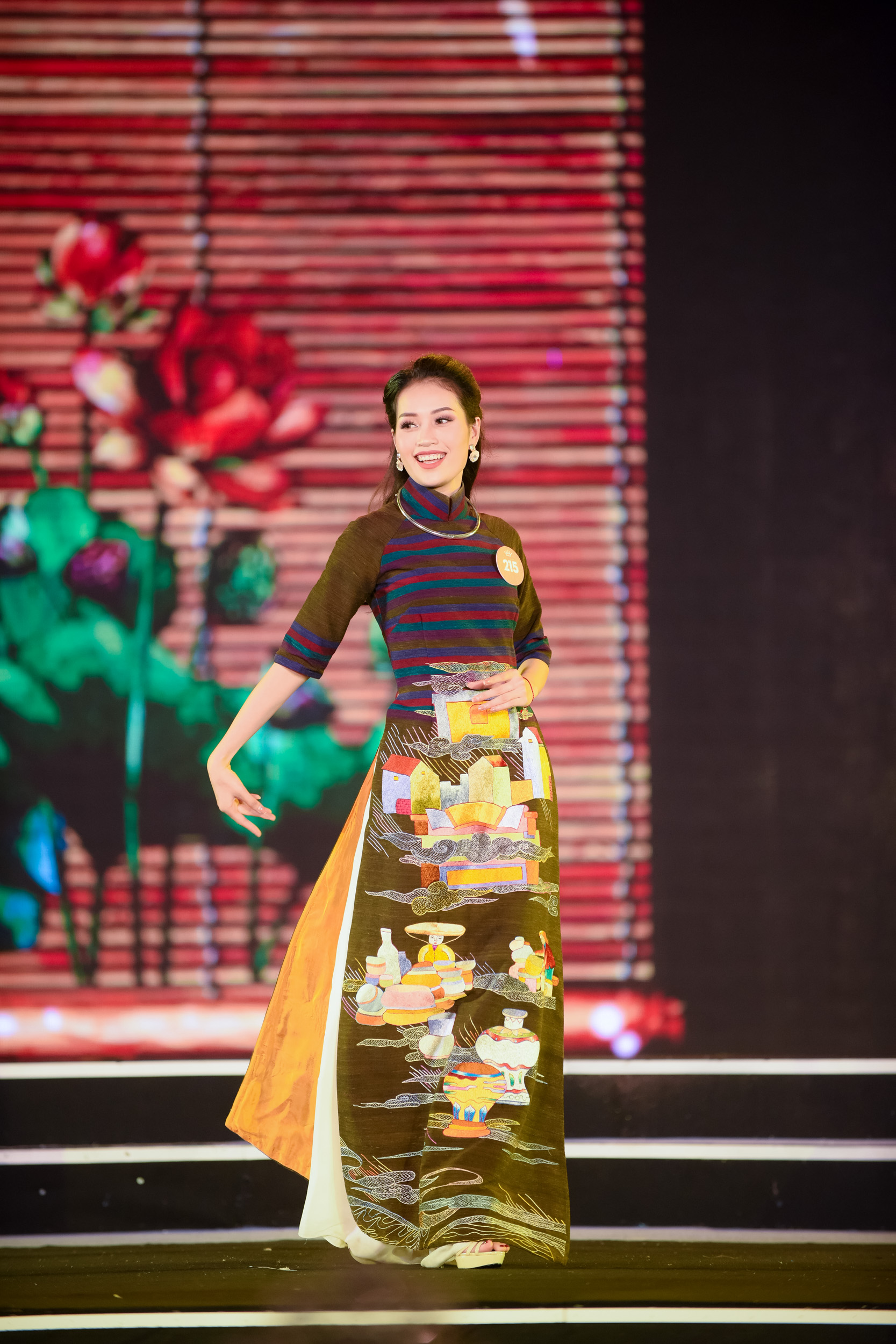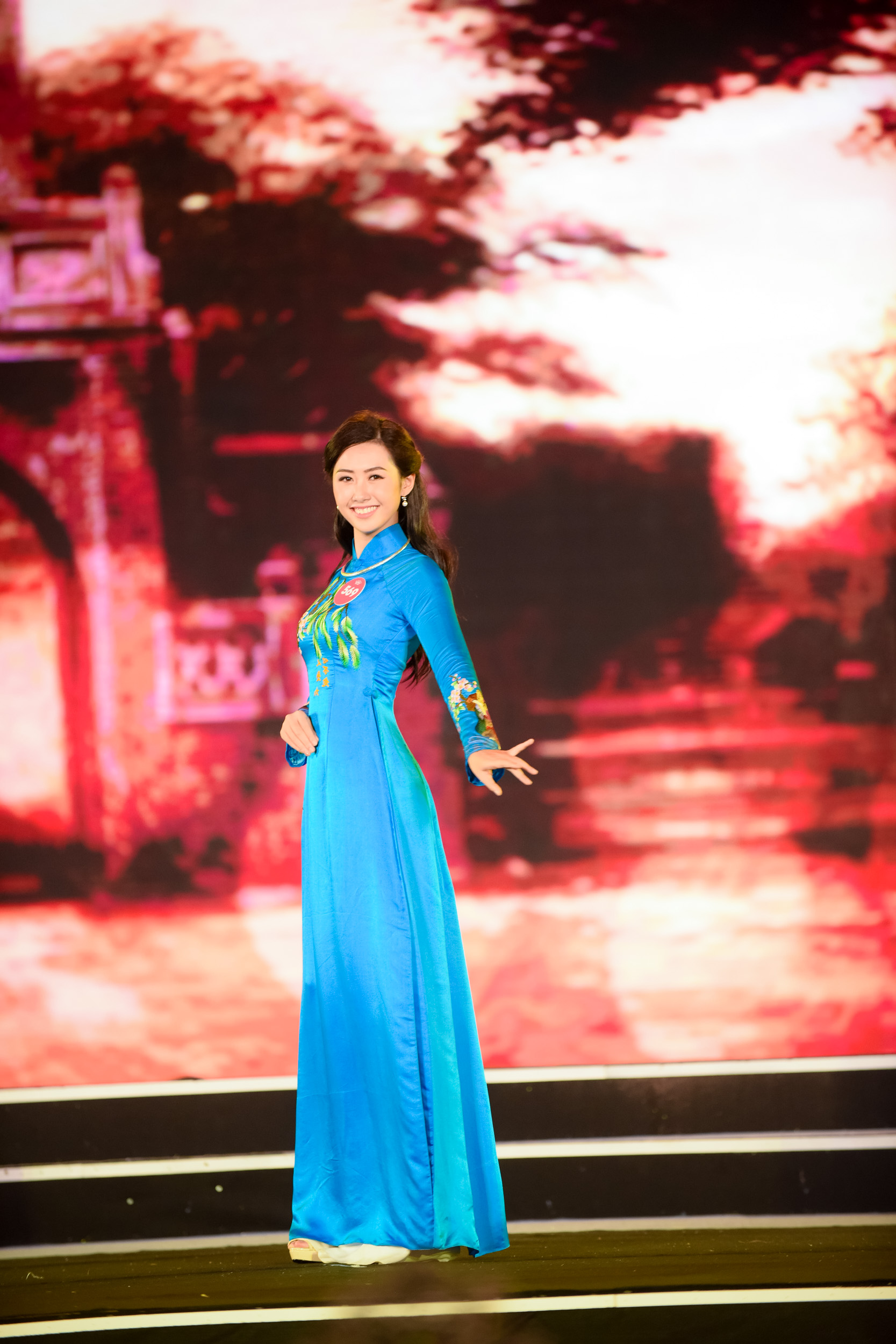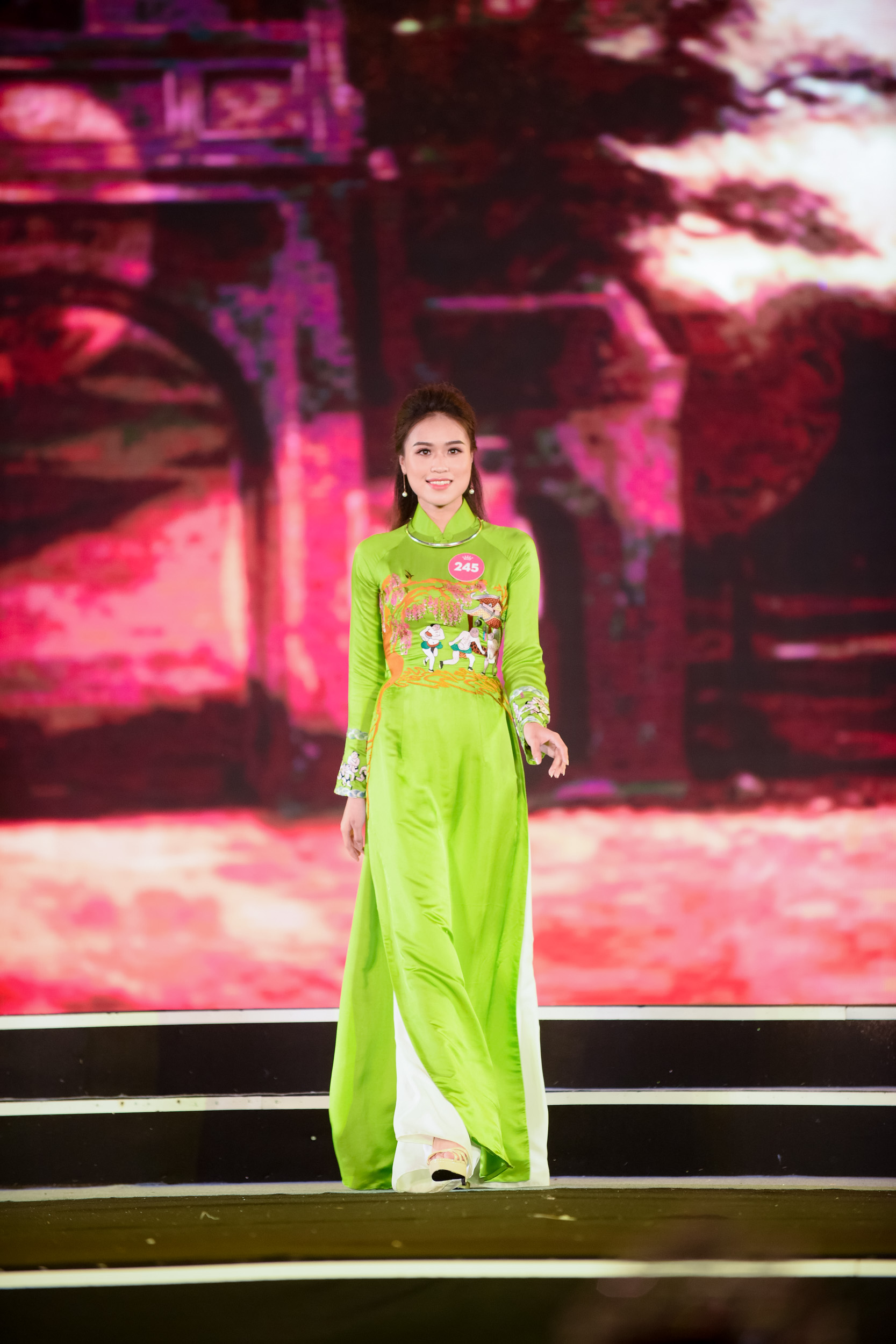 Các thí sinh duyên dáng trong phần thi Trang phục áo dài.
