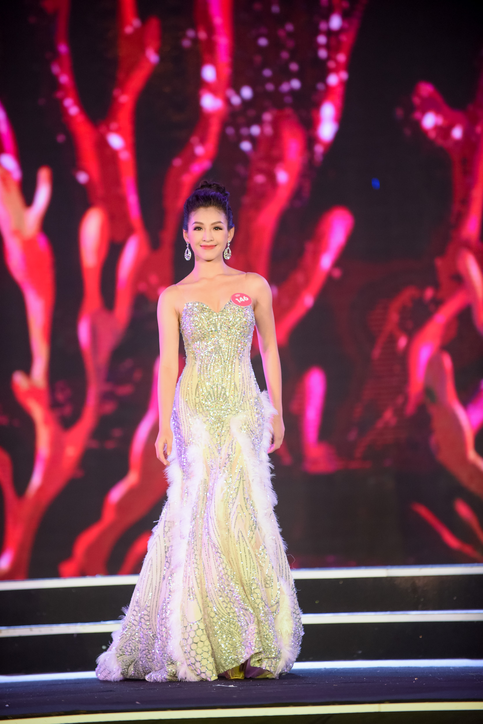 Các thí sinh tiếp tục với phần thi Trang phục dạ hội.
