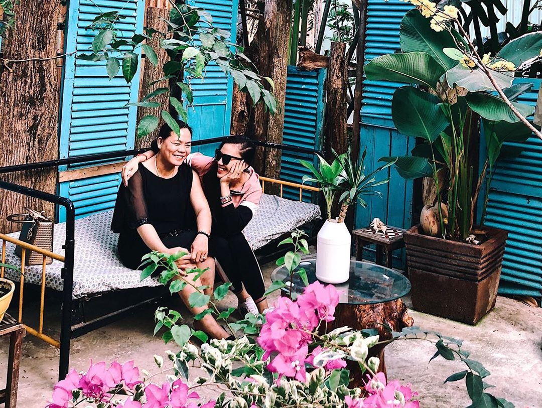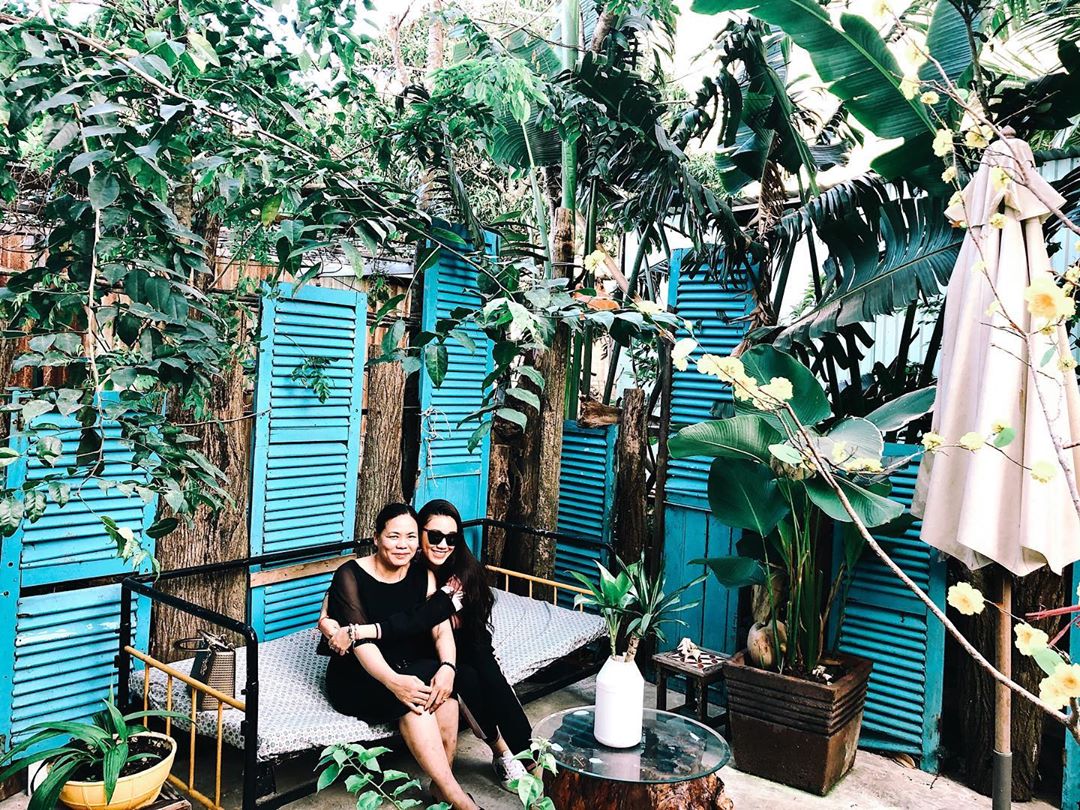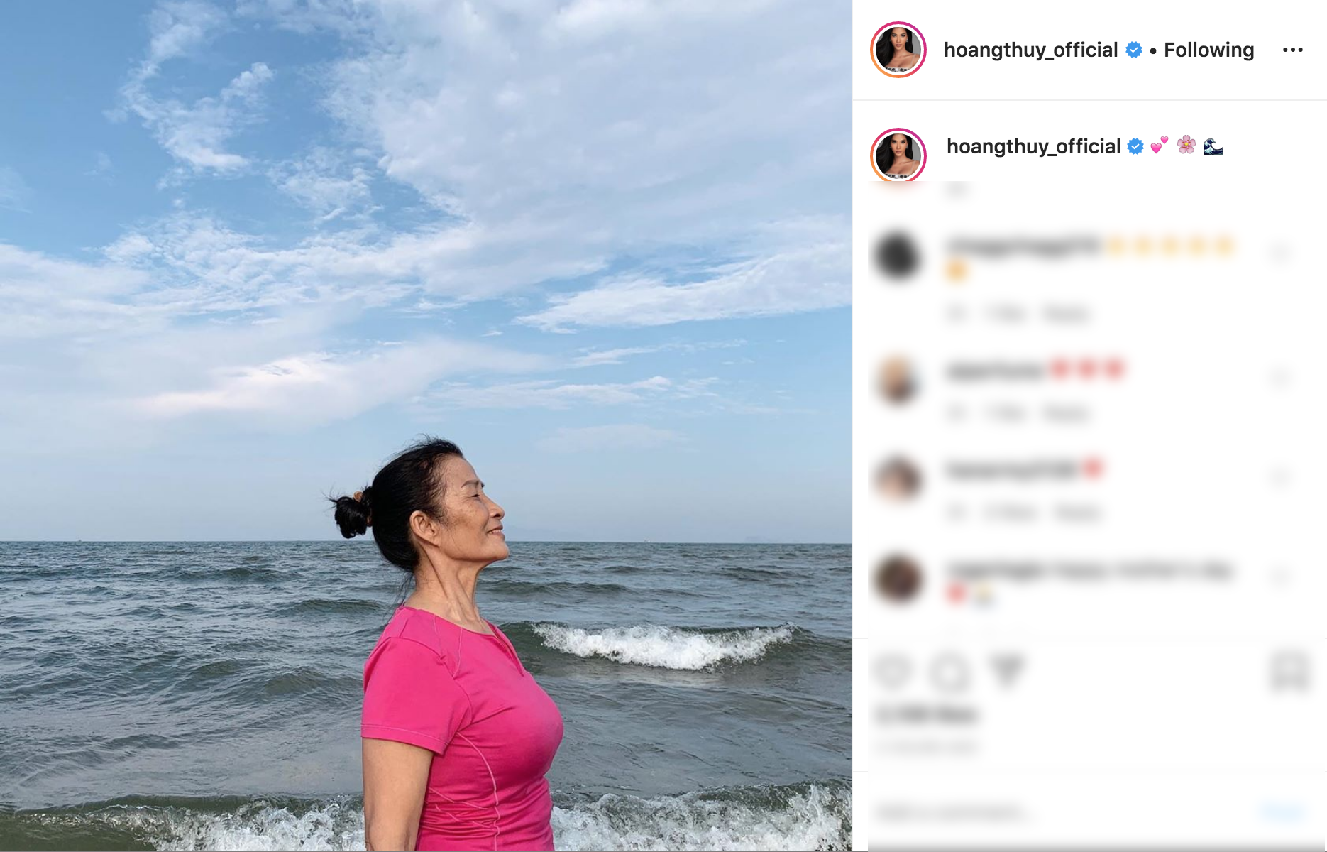 Á hậu Hoàng Thùy chia sẻ bức ảnh cô nàng hướng dẫn mẹ tạo dáng.