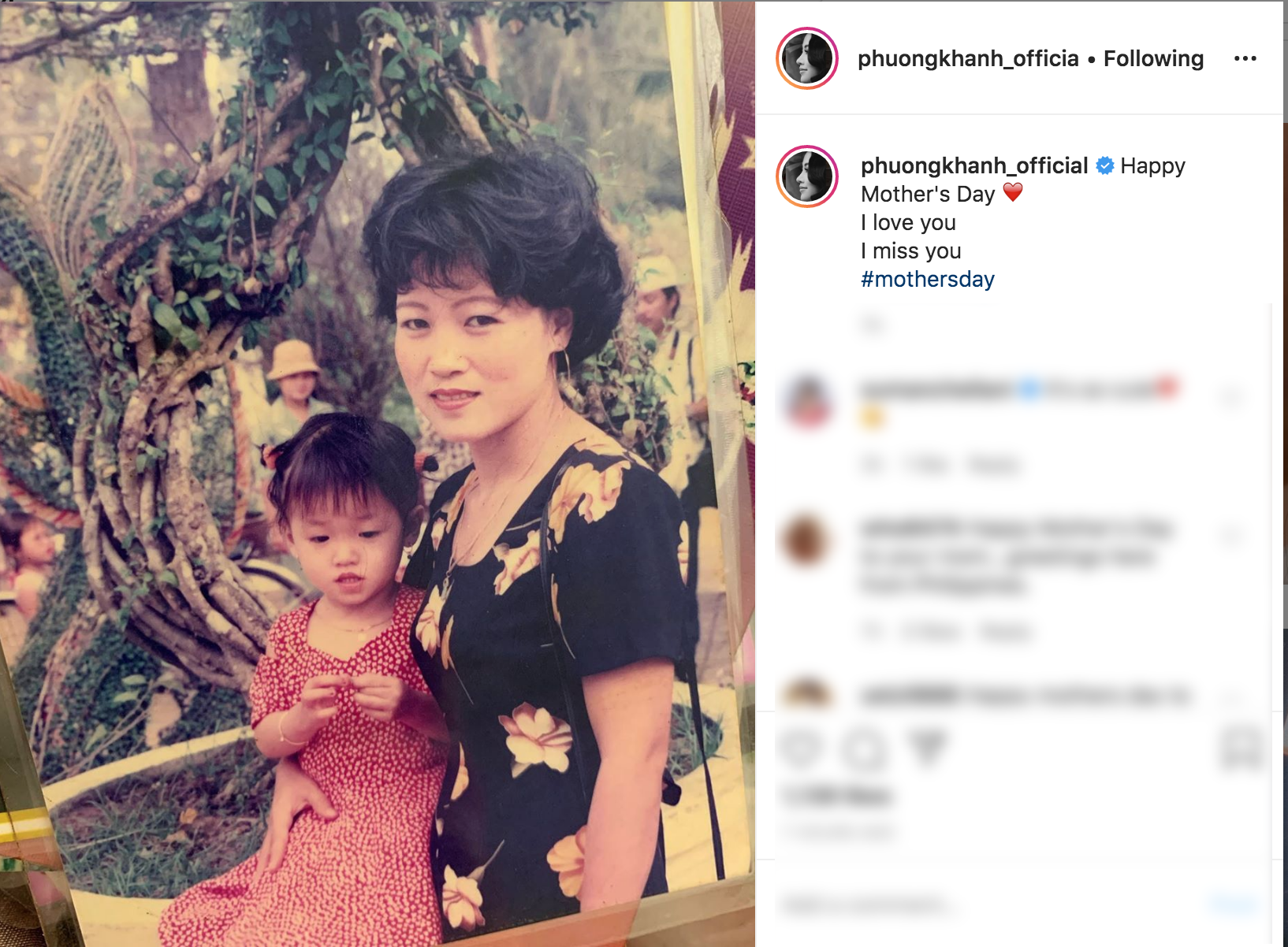 Miss Earth Phương Khánh đăng ảnh cô còn bé được bế trong vòng tay của mẹ nhân ngày 10/5 đặc biệt.