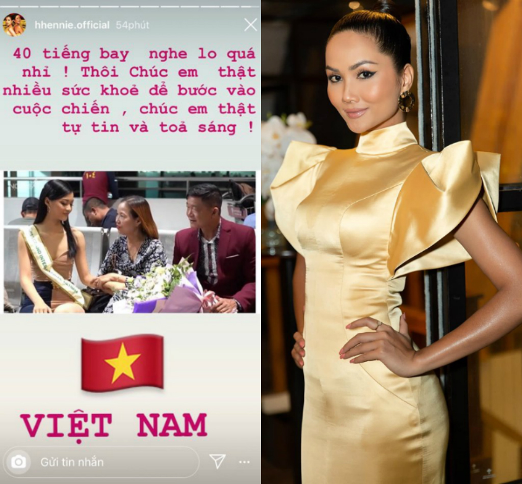 H'Hen Niê gửi lời động viên đến Kiều Loan khi hay tin đàn em phải ngồi chuyến bay dài gần 40 tiếng để đi thi quốc tế.