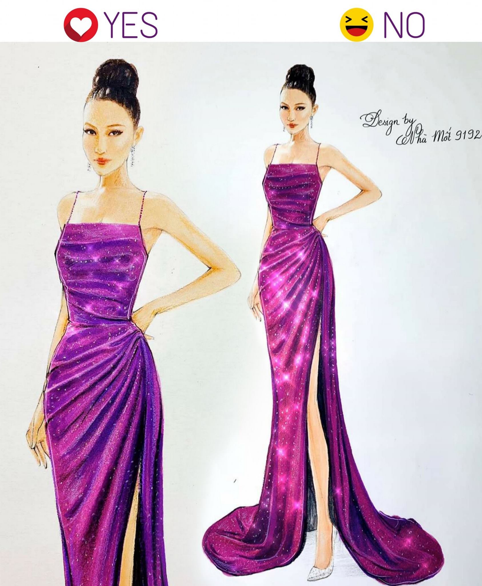 Tuy vậy, nhiều “fan cứng” của Hoài Sa tiết lộ cô nàng sẽ tạo bất ngờ khi thay đổi trang phục dạ hội chung kết vào phút chót. Thiết kế Evening Gown xẻ đùi tím đang được đồn đoán sẽ đồng hành cùng đại diện Việt Nam trong đêm thi quyết định.