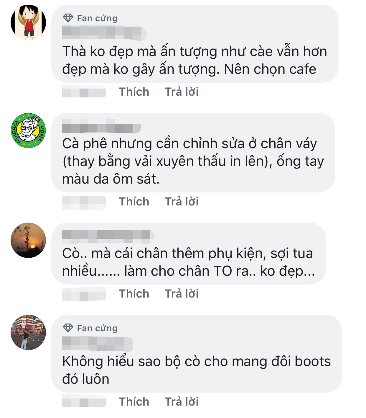 Tuy nhiên, cả 2 bộ National Costume này đều có sự khác biệt so với bản vẽ và còn cần được hoàn thiện kĩ lưỡng hơn theo ý kiến của đông đảo người hâm mộ. Như bộ “Cò” thì nên xem xét về phần đôi giày và phần tà sau vì rườm rà, nặng nề gây khó khăn trong di chuyển. Phần tùng váy và nón của bộ “Cà phê” cần phải được thiết kế thuận tiện, tiết chế hơn cho việc Hoàng Thùy xoay váy, tạo điểm nhấn khi trình diễn.